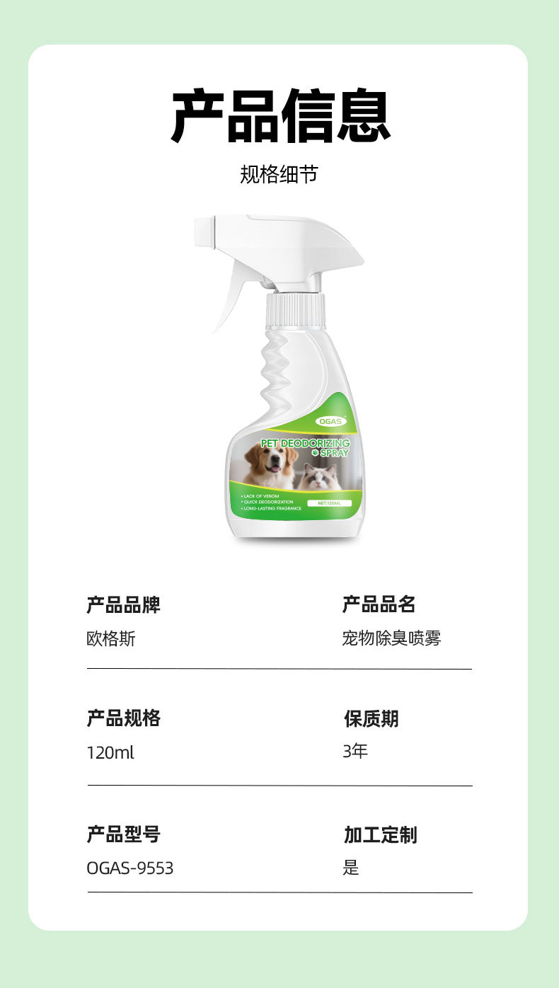 规格 OGAS宠物除臭喷雾120ml,OGAS猫砂盆清洁剂120ml