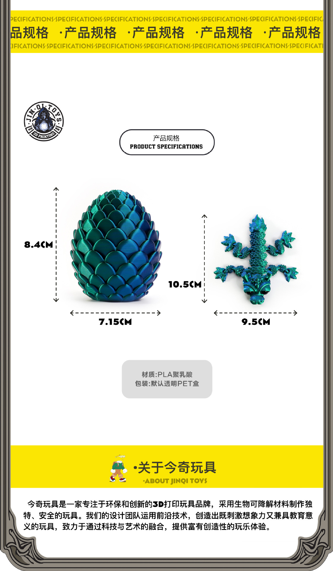 3D打印破壳龙蛋套装萌宠龙复活节摆件手办礼物组装彩色装饰创意