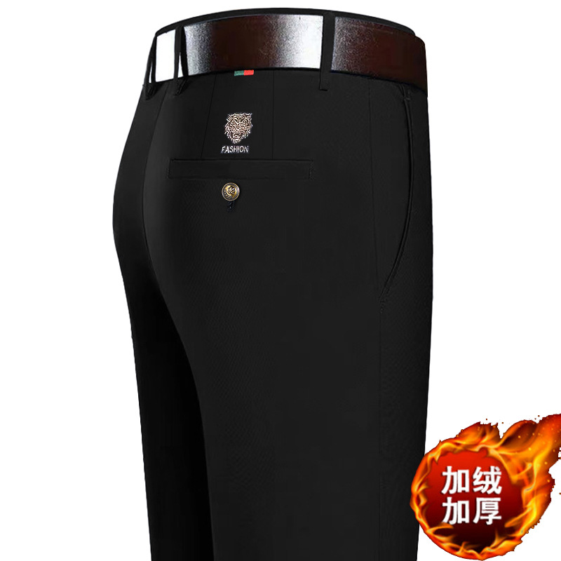 秋冬加毛カジュアルパンツ男直筒ビジネス弾力男ズボン虎頭刺繍韓国版青年四面弾ズボン