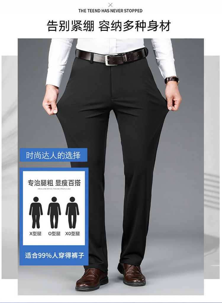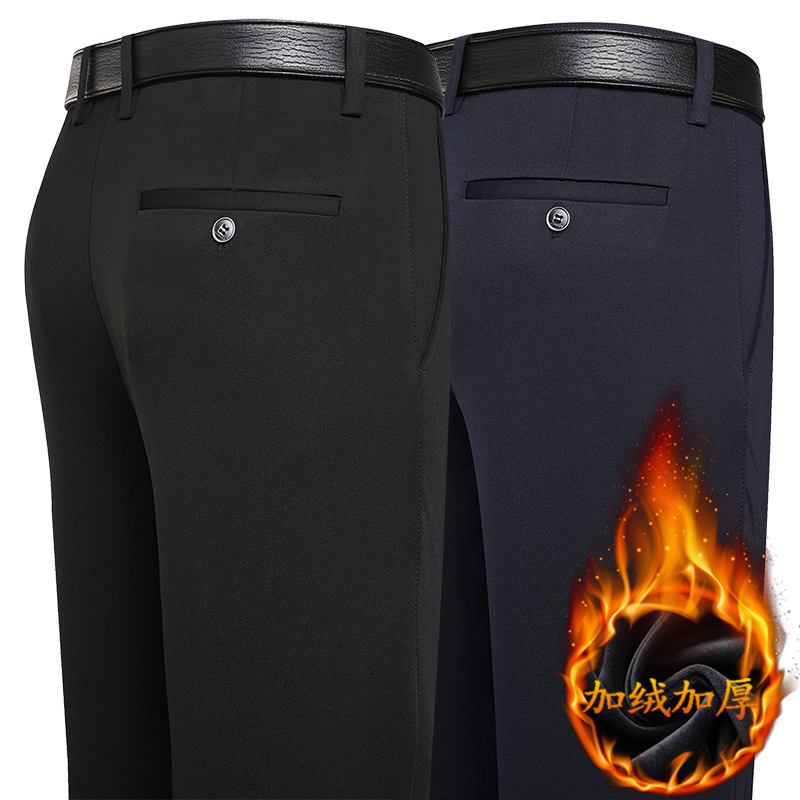 冬用メンズスーツパンツ、保温性、高伸縮性、裏起毛、カジュアルパンツ、中年向け、ドレープ感のあるスーツパンツ、ビジネス、お父さん向け、ハイウエストパンツ