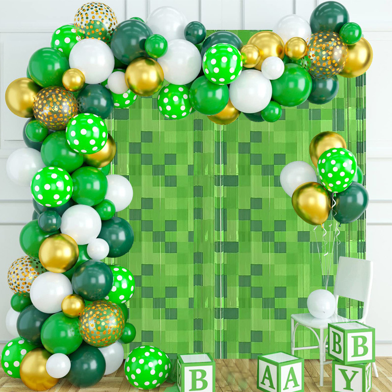 跨境我的世界马赛克像素雨丝帘游戏主题生日装饰场景布置派对用品