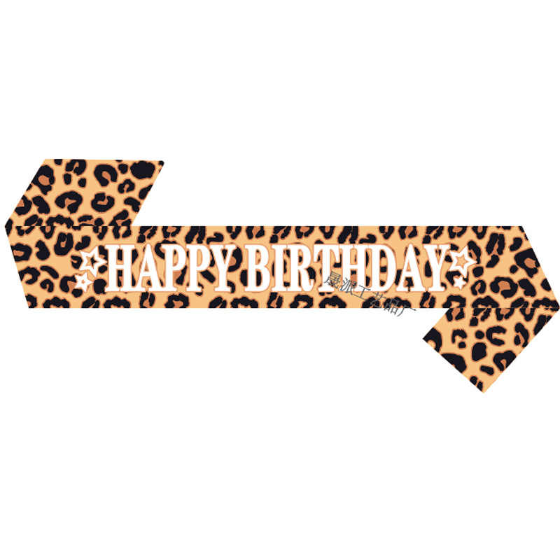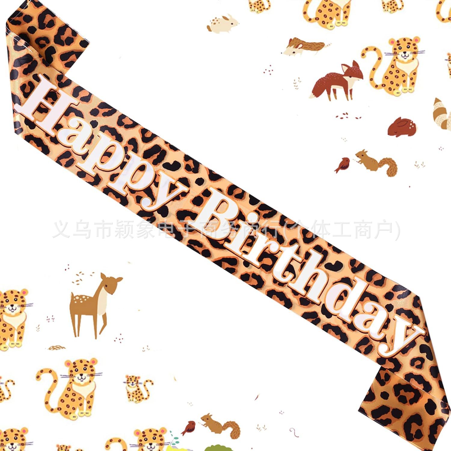 丛林野生动物主题生日派对绶带 happy birthday豹纹印花装饰肩带