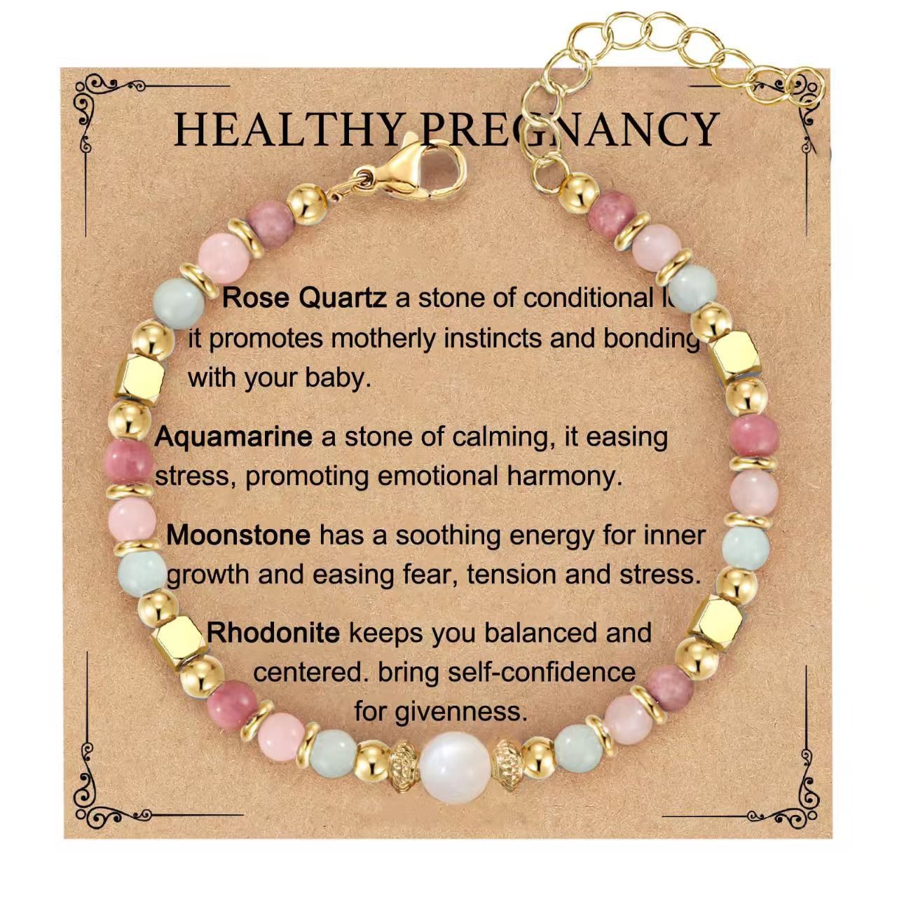 孕妇手链女士怀孕礼物天然石三重保护手链黑曜石海蓝宝月光石手链