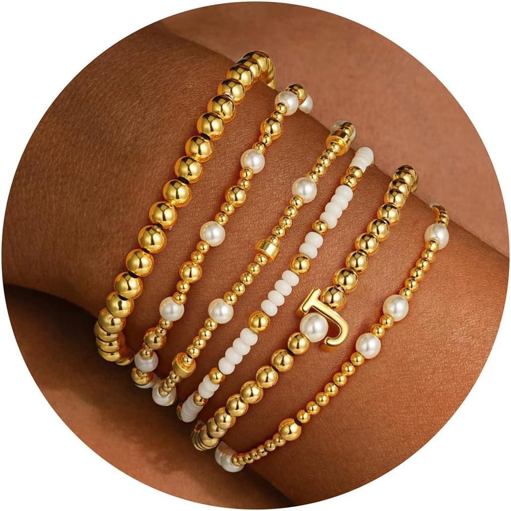 8つのセットのラグビーのブレスレットの多層は水晶の愛の五角星のアルファベットの柔らかい陶の友情の弾力の手の串をかぶせます。