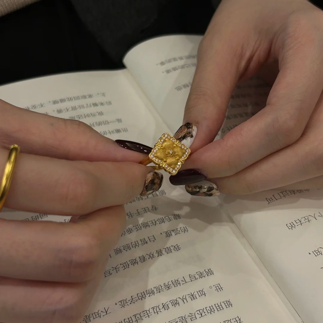 菱形四つ葉のクローバーリング、ハイエンド、軽い贅沢、多用途、個性、シンプル、ニッチな気質リング、小紅書のホットスタイル