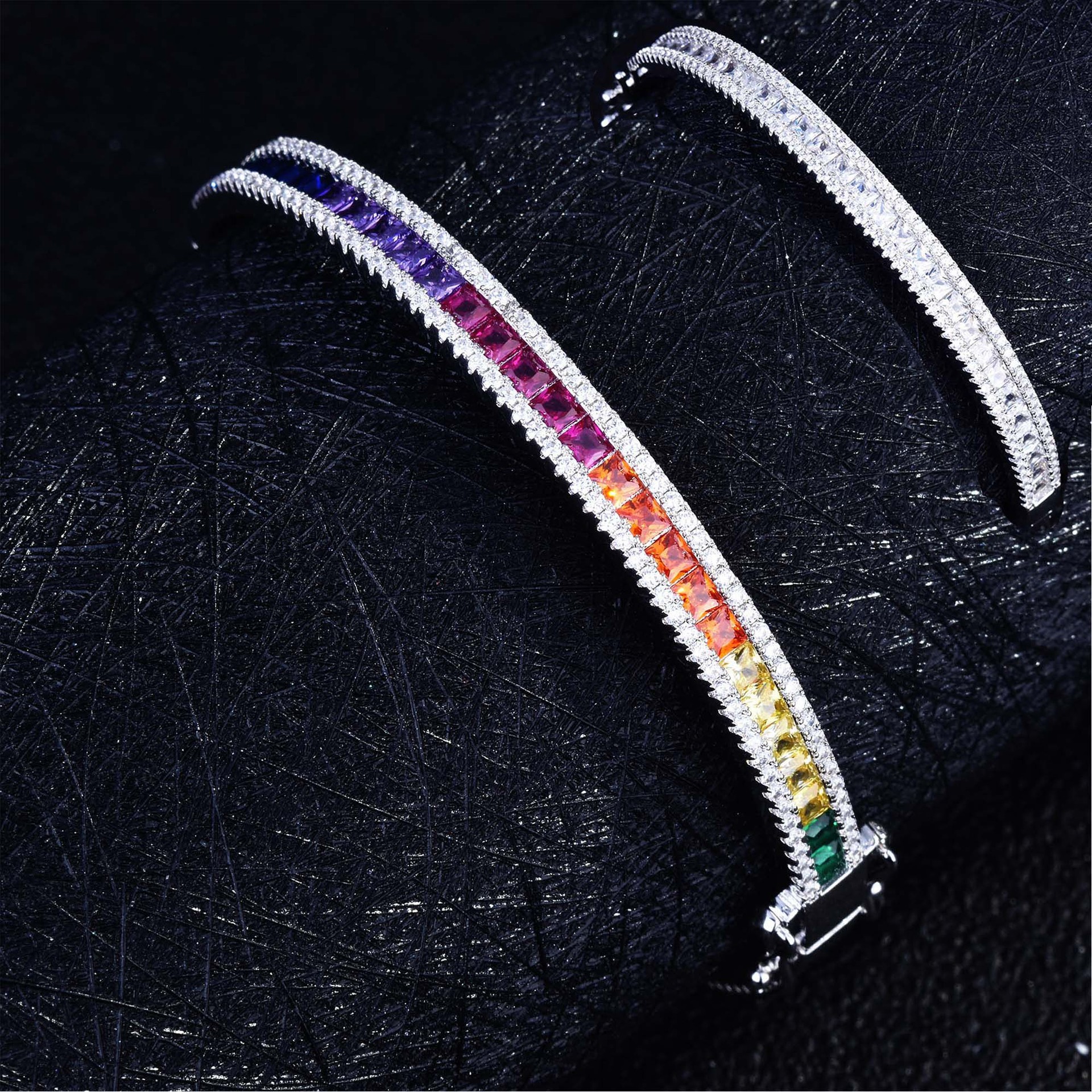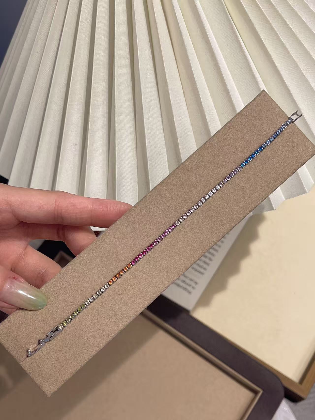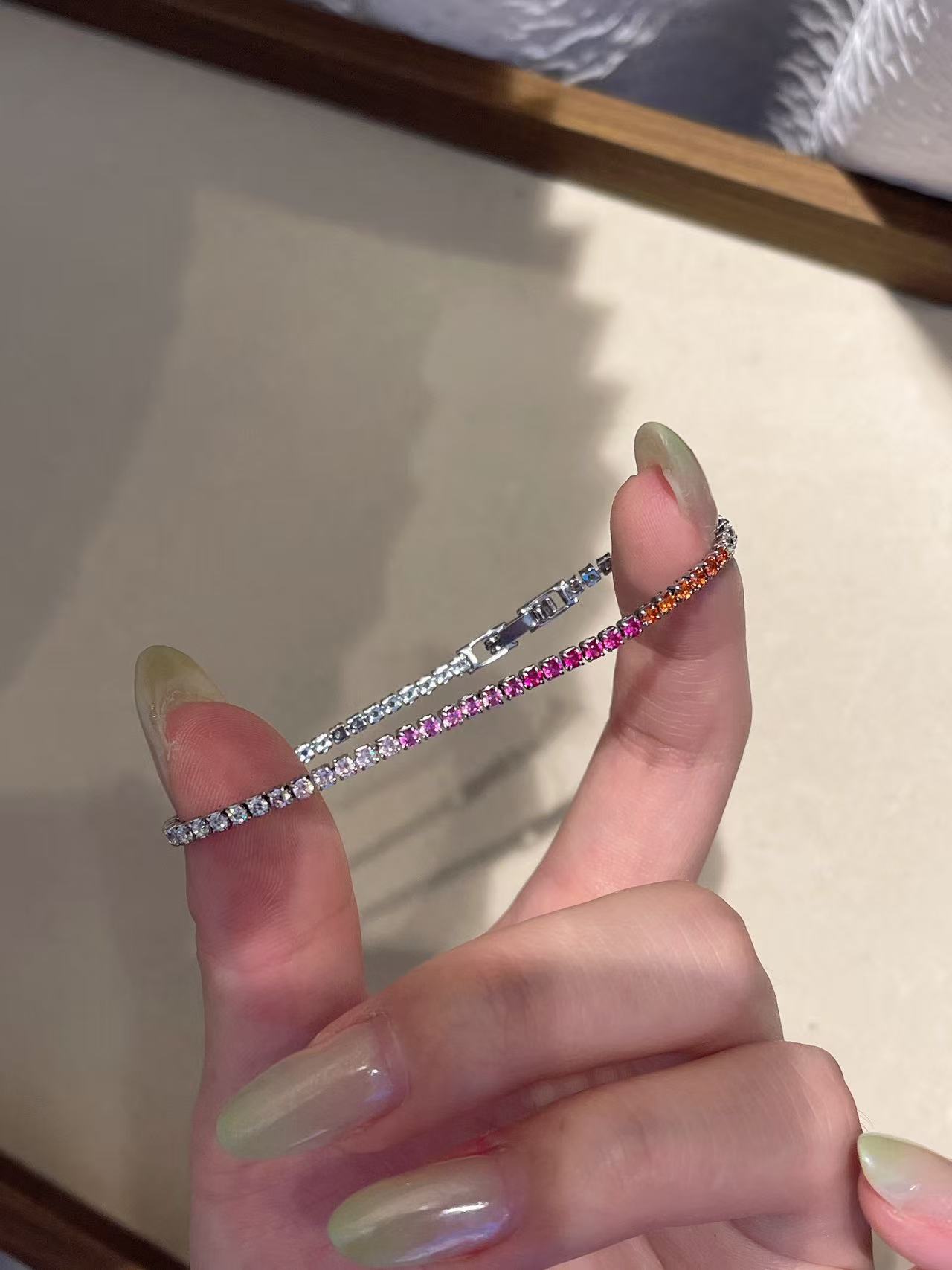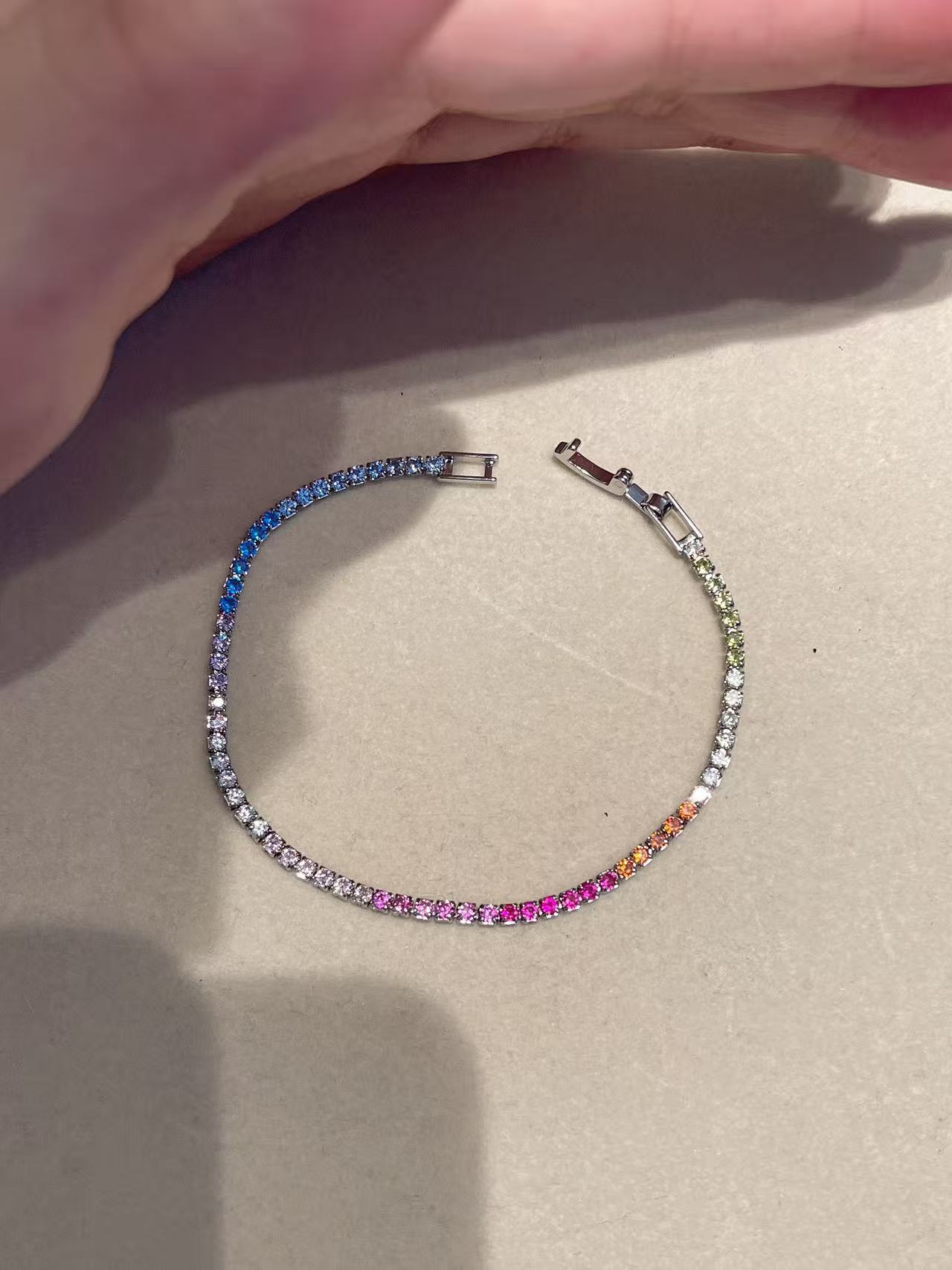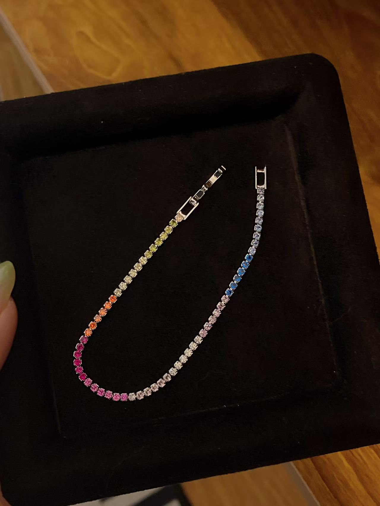 ミニグラデーションレインボーダイヤモンドシルバーブレスレットサマードーパミンブレスレット絶妙なハンドジュエリー甘い女の子ニッチ多用途