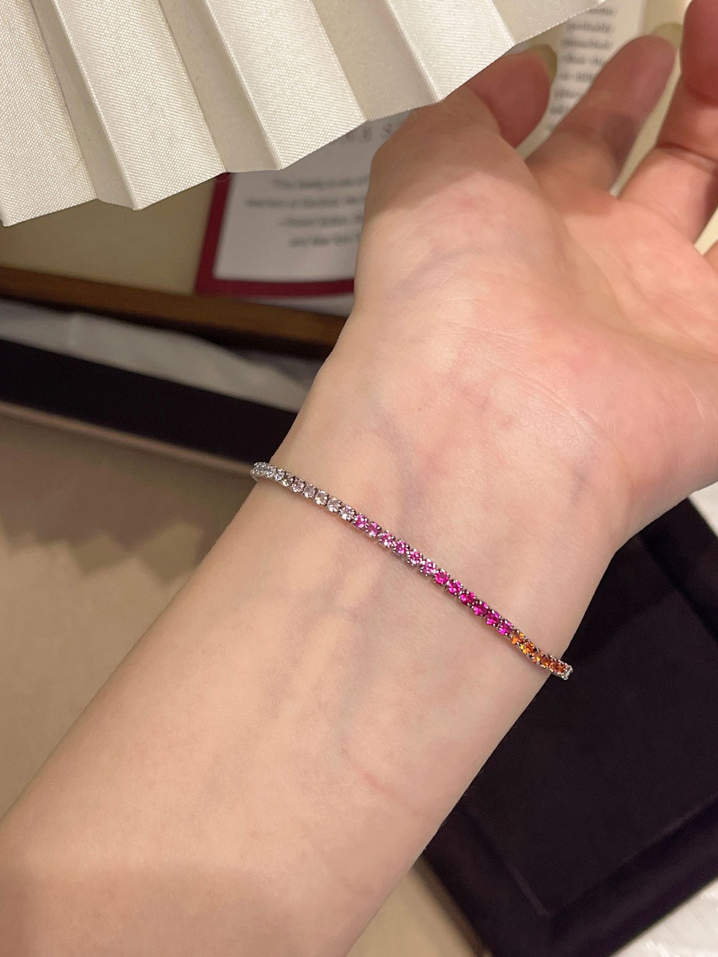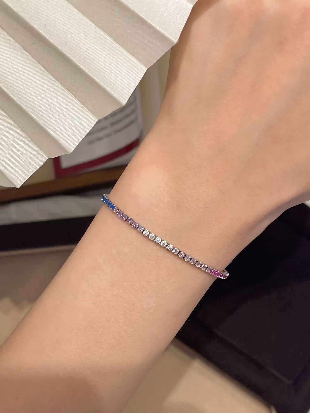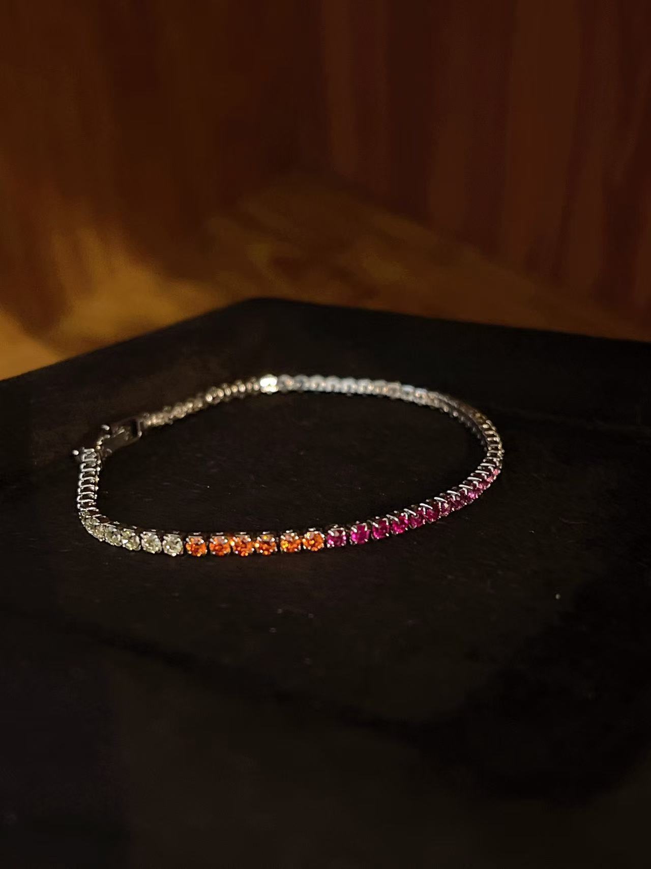 渐变幻彩锆石网球手链男女高级感小众设计个性不掉色情侣百搭手饰