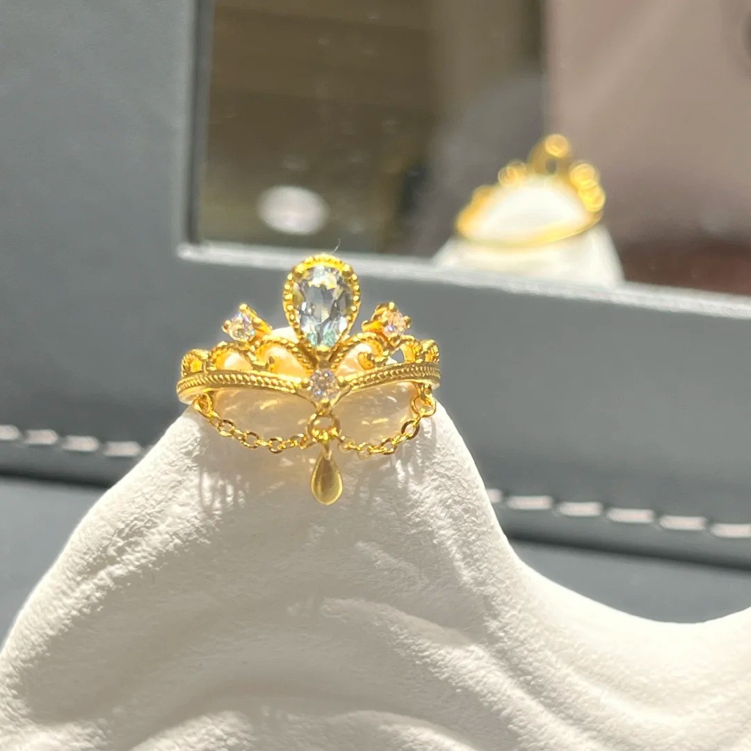ブルーアテナシーブルークラウンリング女性のレトロゴールデン宮殿スタイル絶妙なハイエンドニッチデザインリング