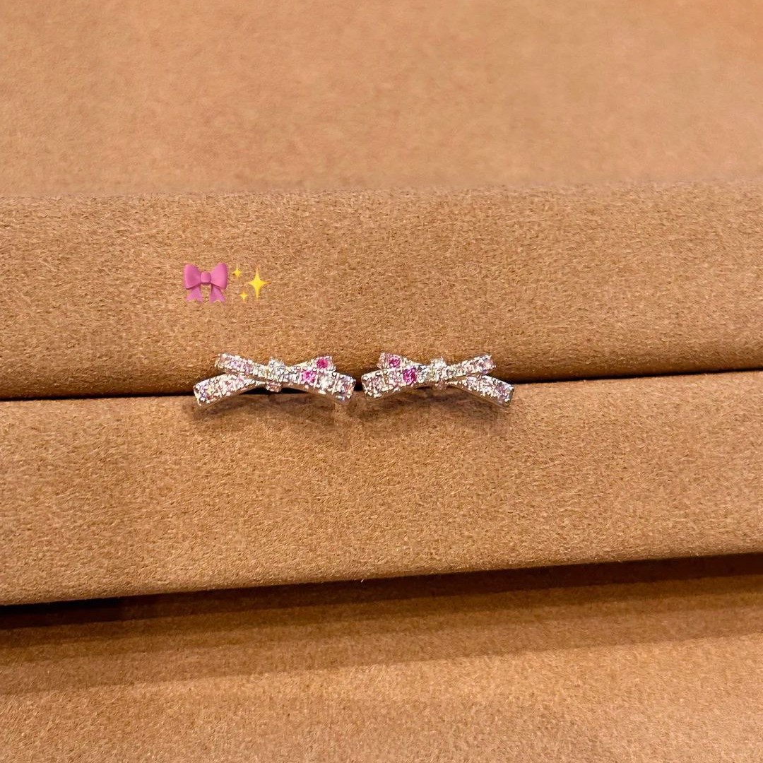 ピンクダイヤモンドリボンイヤリング、イヤークリップ、絶妙でハイエンド、甘いガーリーニッチ、シンプル、デイリー、女性用多用途イヤーカフ