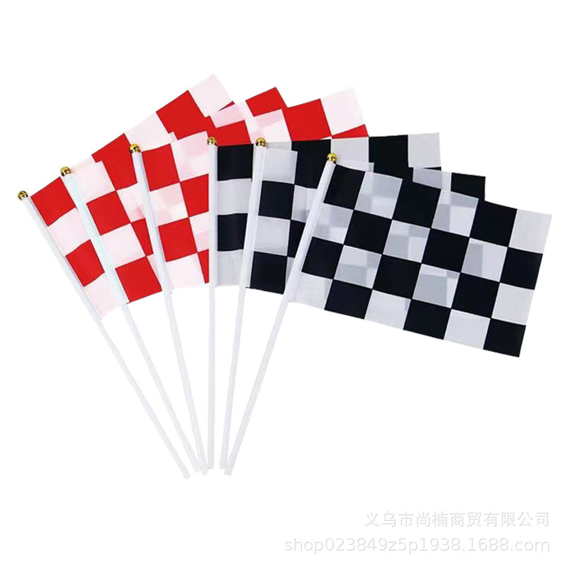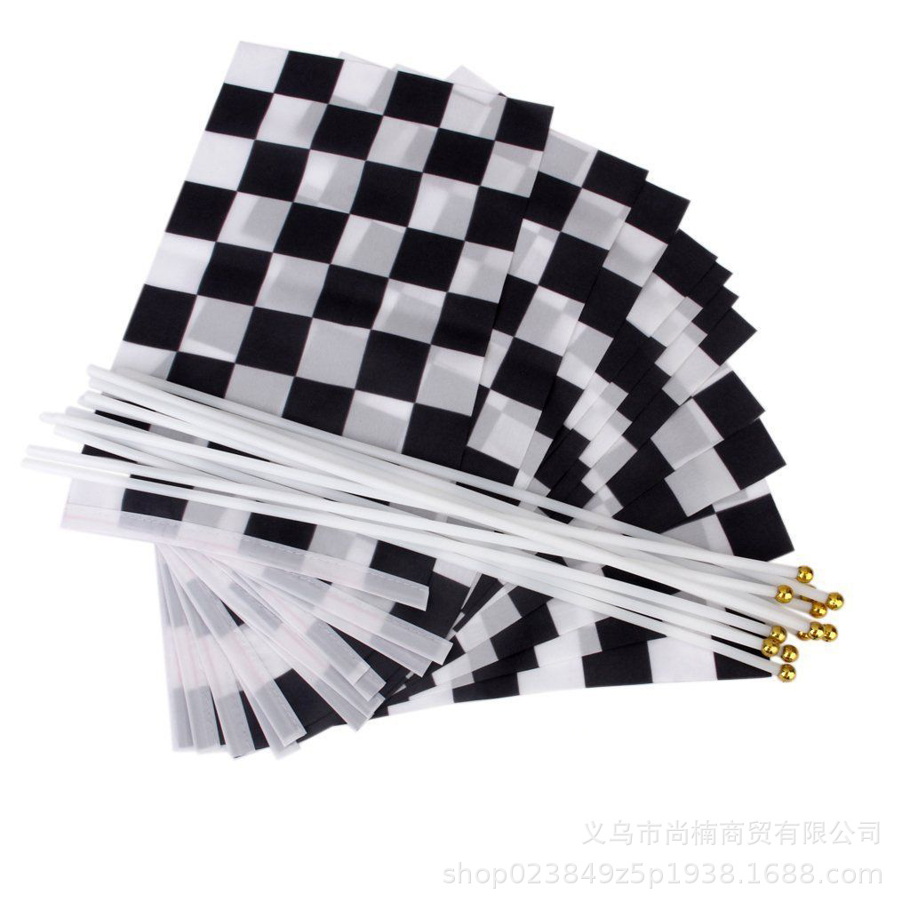 スポットクロスボーダーNo.8白黒チェック柄手振り旗ポリエステルゴールドチップソリッドロッド手振り白黒チェック柄F1小型レーシングフラッグ