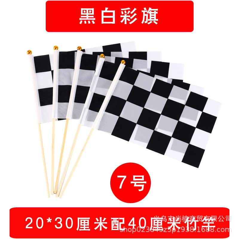 在庫あり 白黒レーシングフラッグ 白黒競技旗 金尖頭ソリッドポール プラスチックポール 手持ち小型旗