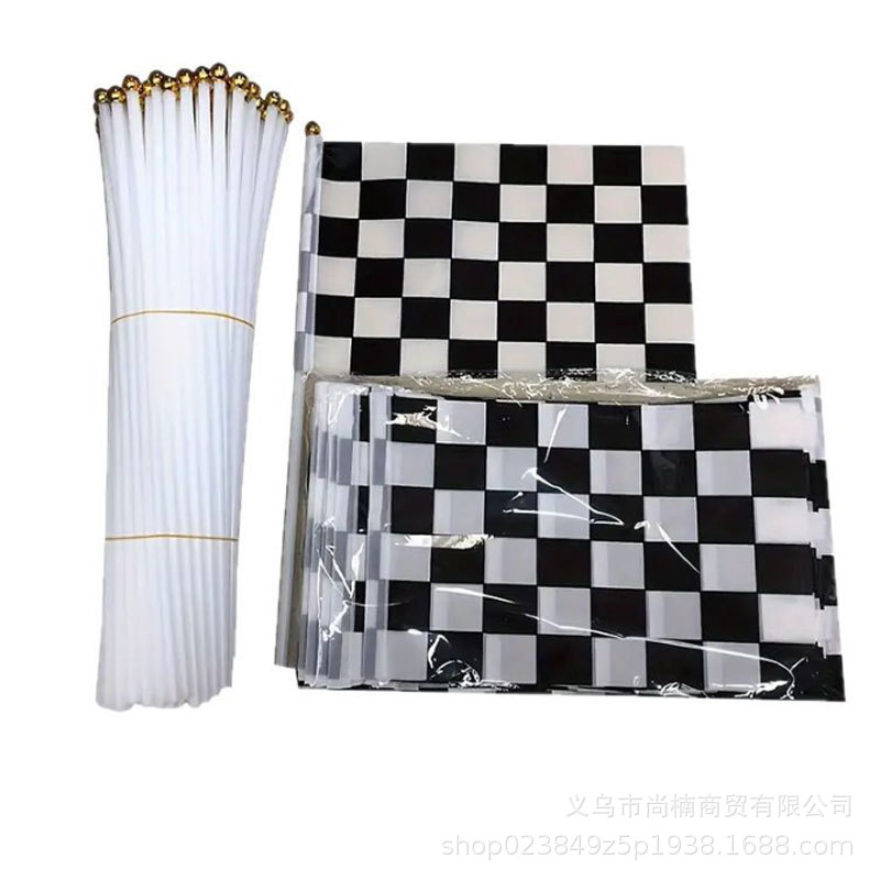 国境を越えた12本のpeプラスチック白黒格子f1レーシングカー信号旗レーシングカーのテーマ装飾白黒格手振り旗