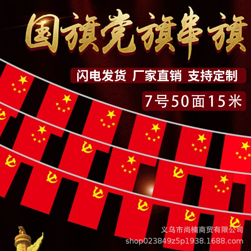 中国国旗ストリングフラッグ、建国記念日吊り下げ旗、5つ星赤旗、党旗、吊り下げ旗、ショッピングモール会場装飾旗、卸売