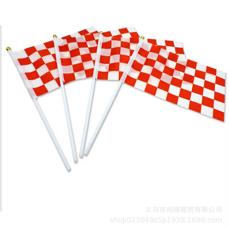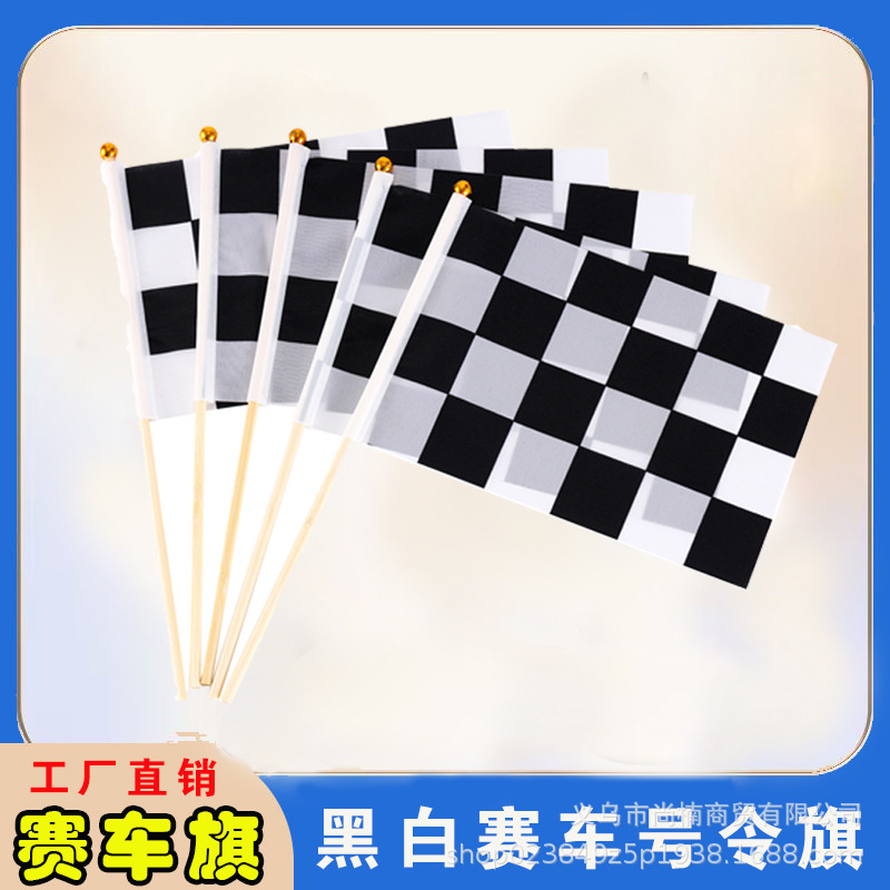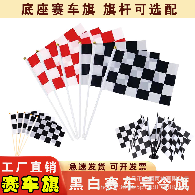 跨境赛车发令信号旗F1赛道发车终点比赛黑白格子旗底座旗小手摇旗