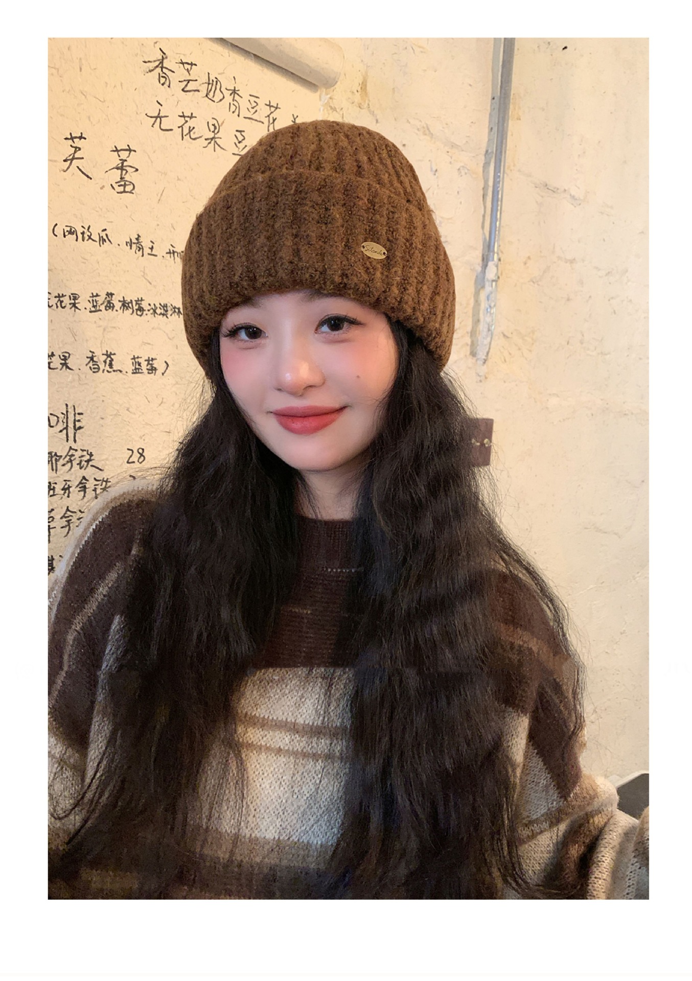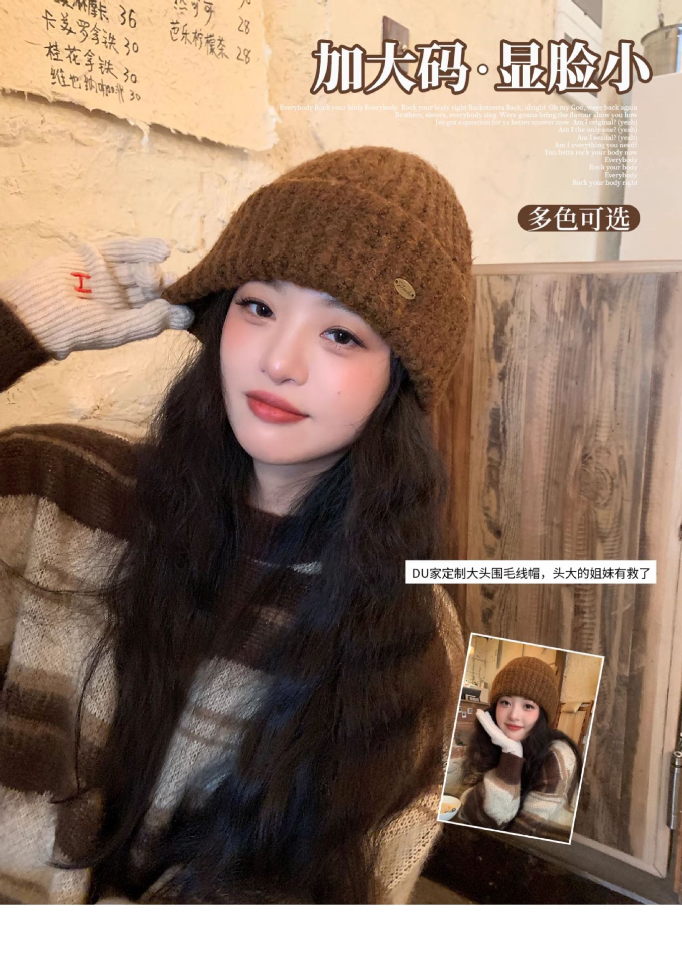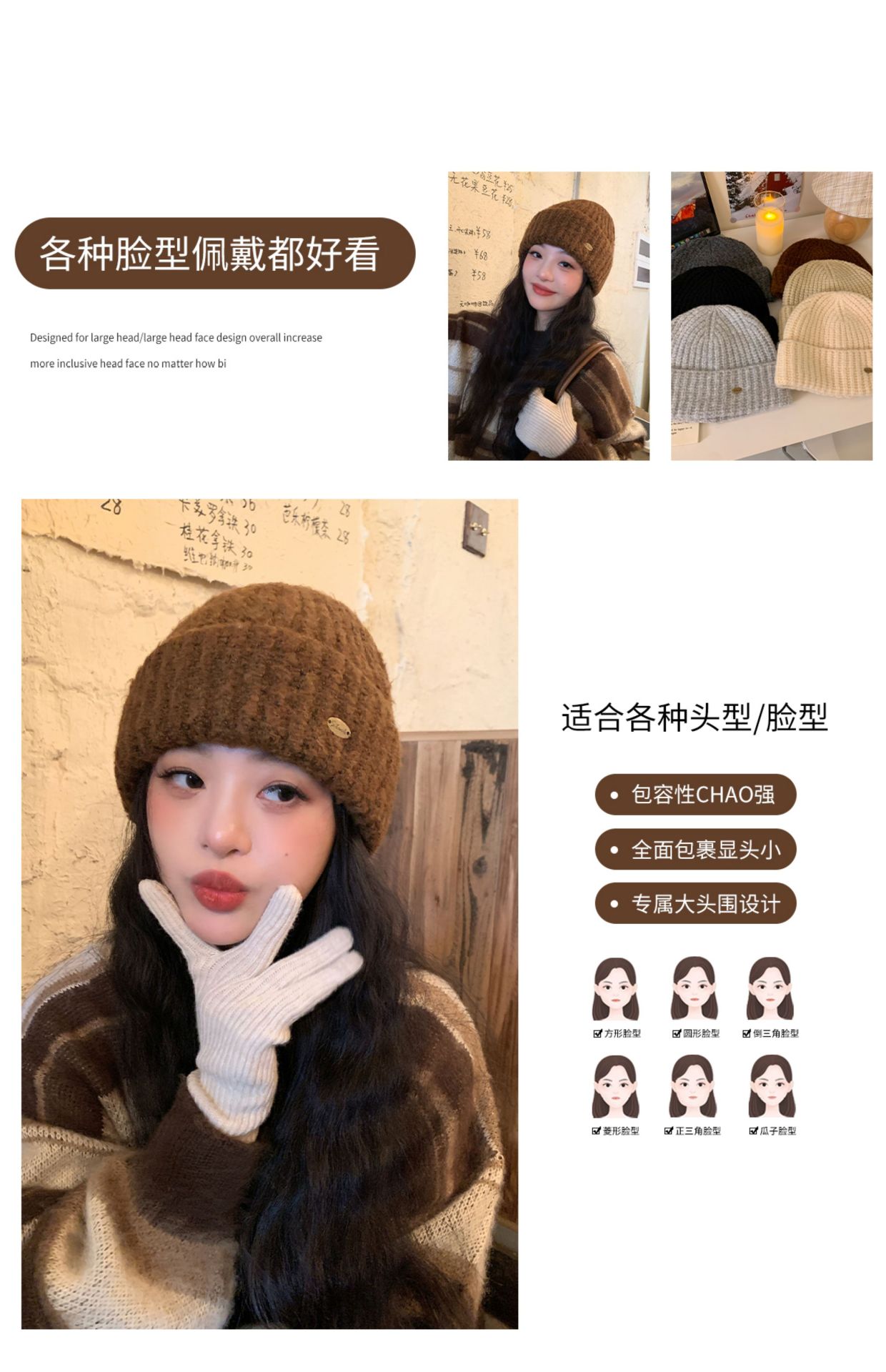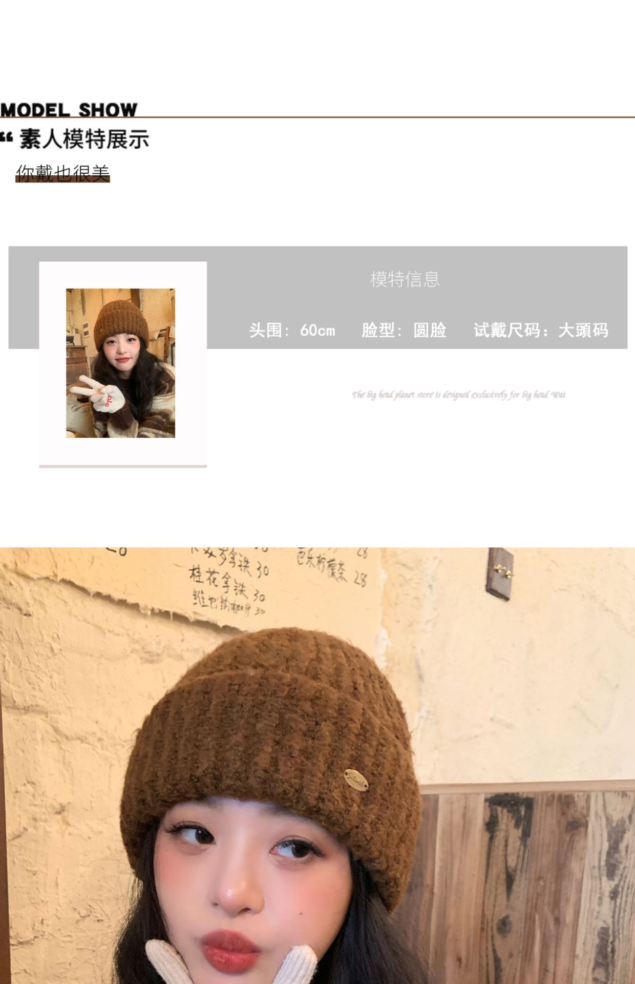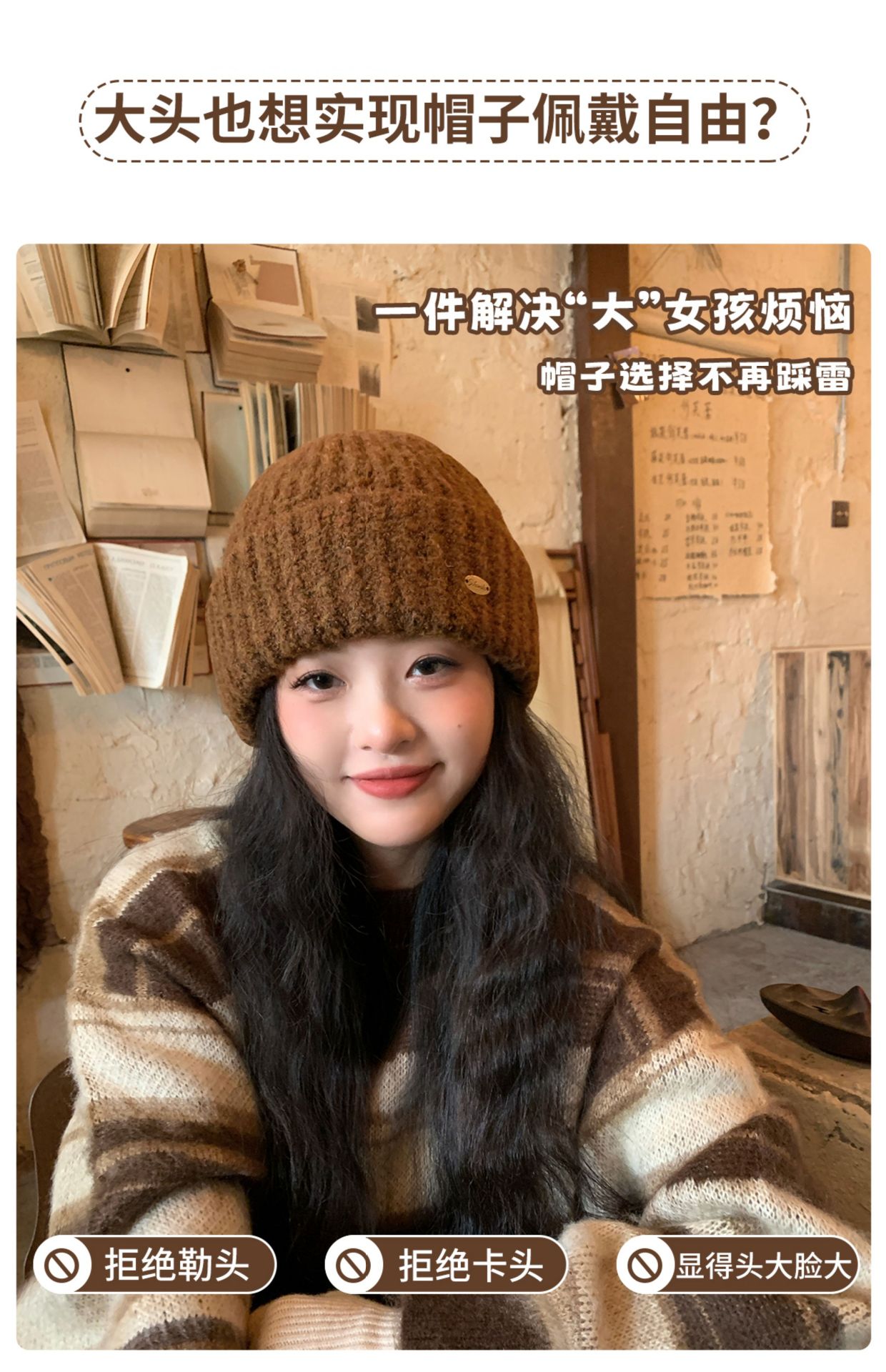 朱静儀と同じスタイルの帽子、女性用2025年新作、大きな頭囲用、折り返し付きのパイル帽子、高級感のある秋冬ニット防寒帽子、男性用