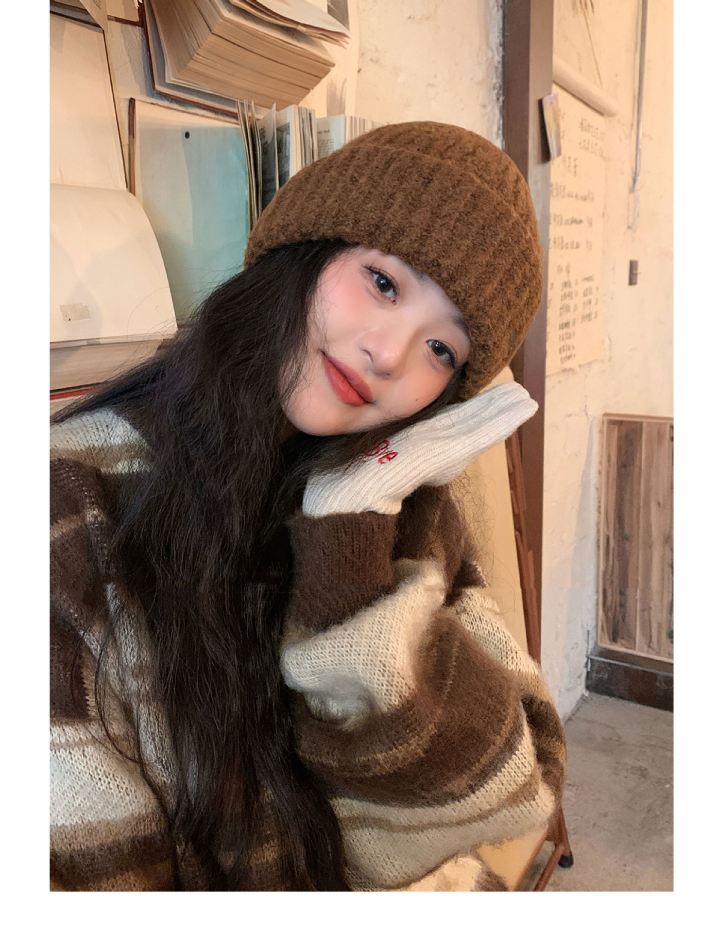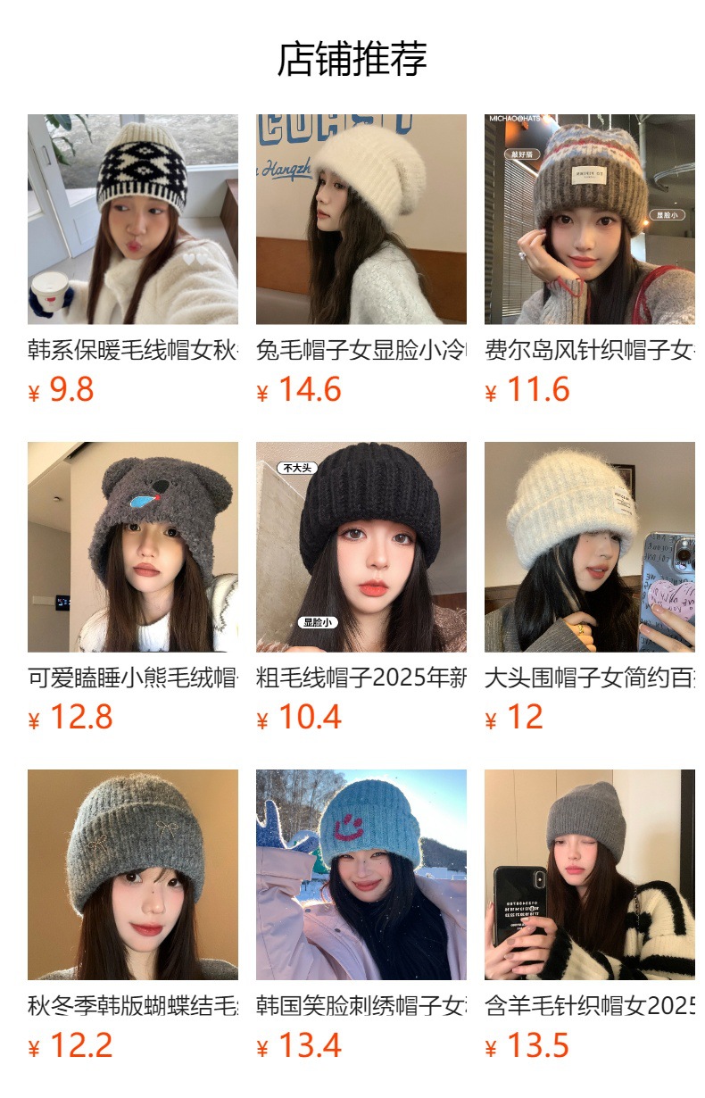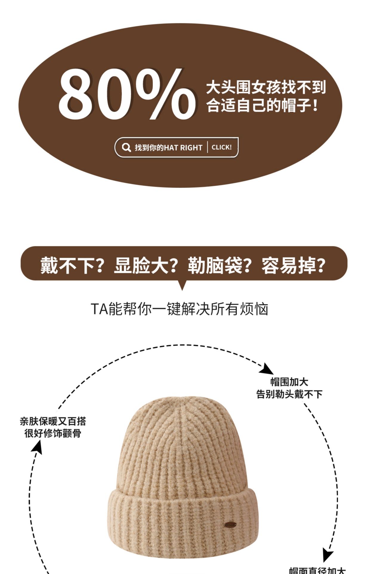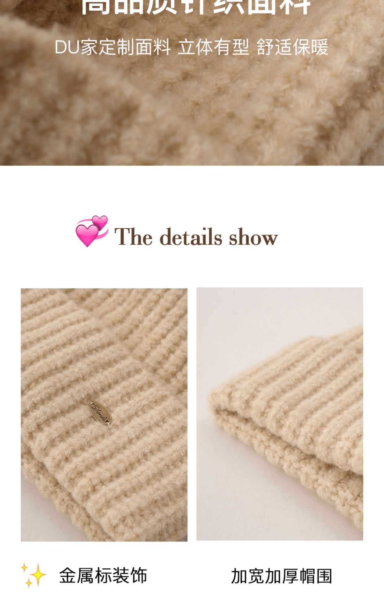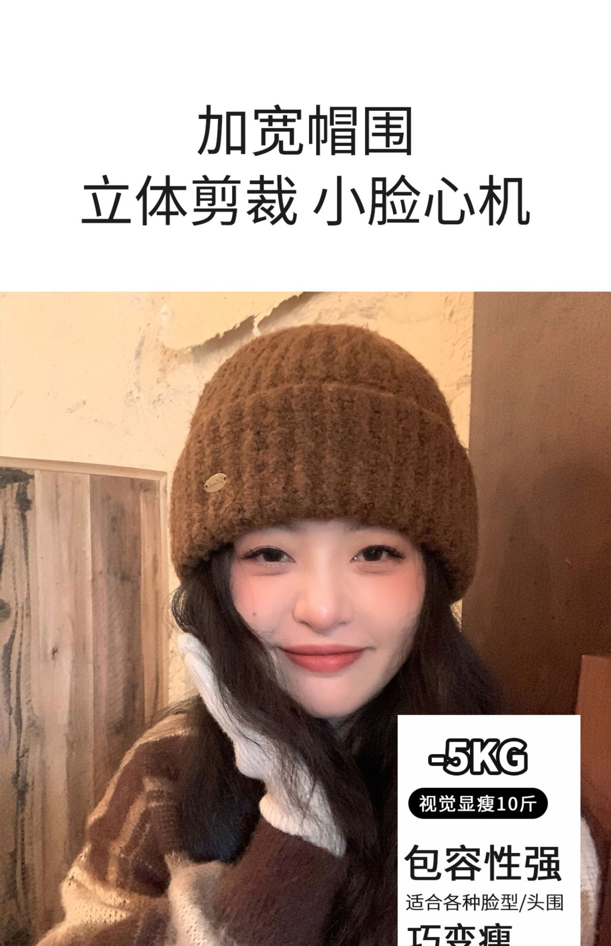 羊毛混纺毛线帽子女冬季加厚毛线帽户外防风骑车护耳帽显脸小冷帽