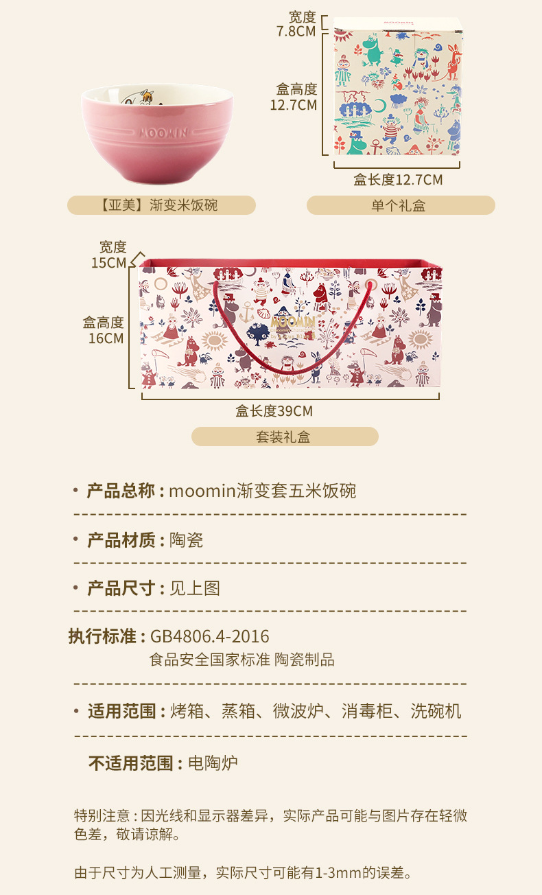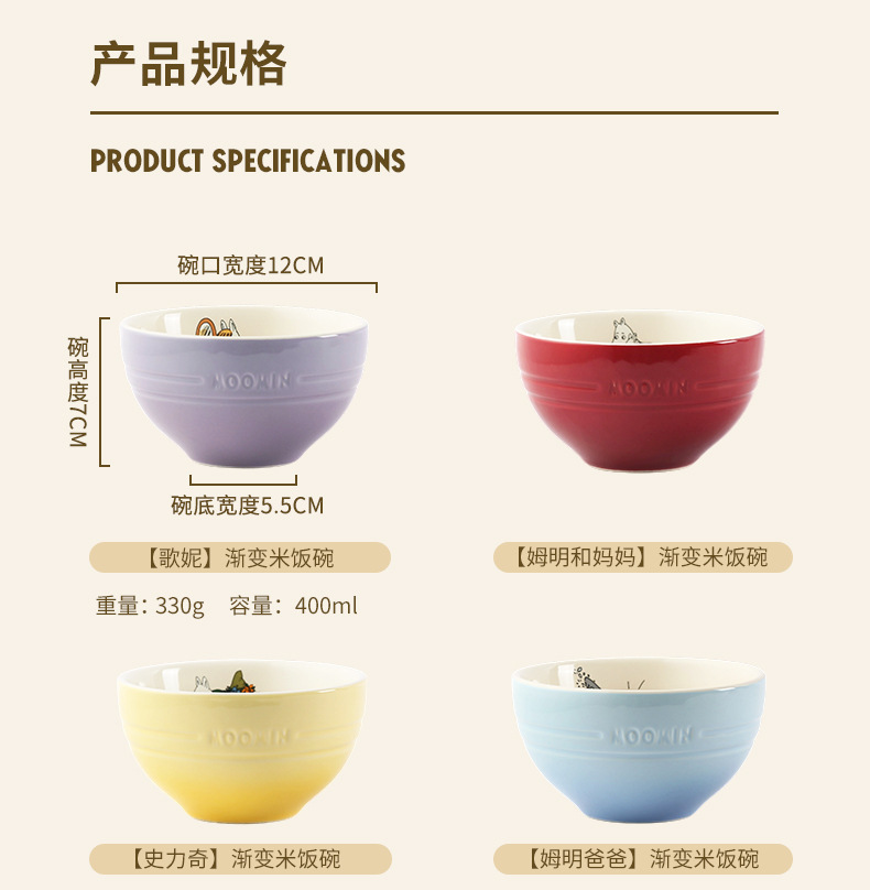 颜色 【歌妮】moomin4.75寸渐变米饭碗,【姆明和妈妈】moomin4.75寸渐变米饭碗,【史力奇】moomin4.75寸渐变米饭碗,【姆明爸爸】moomin4.75寸渐变米饭碗,【亚美】moomin4.75寸渐变米饭碗