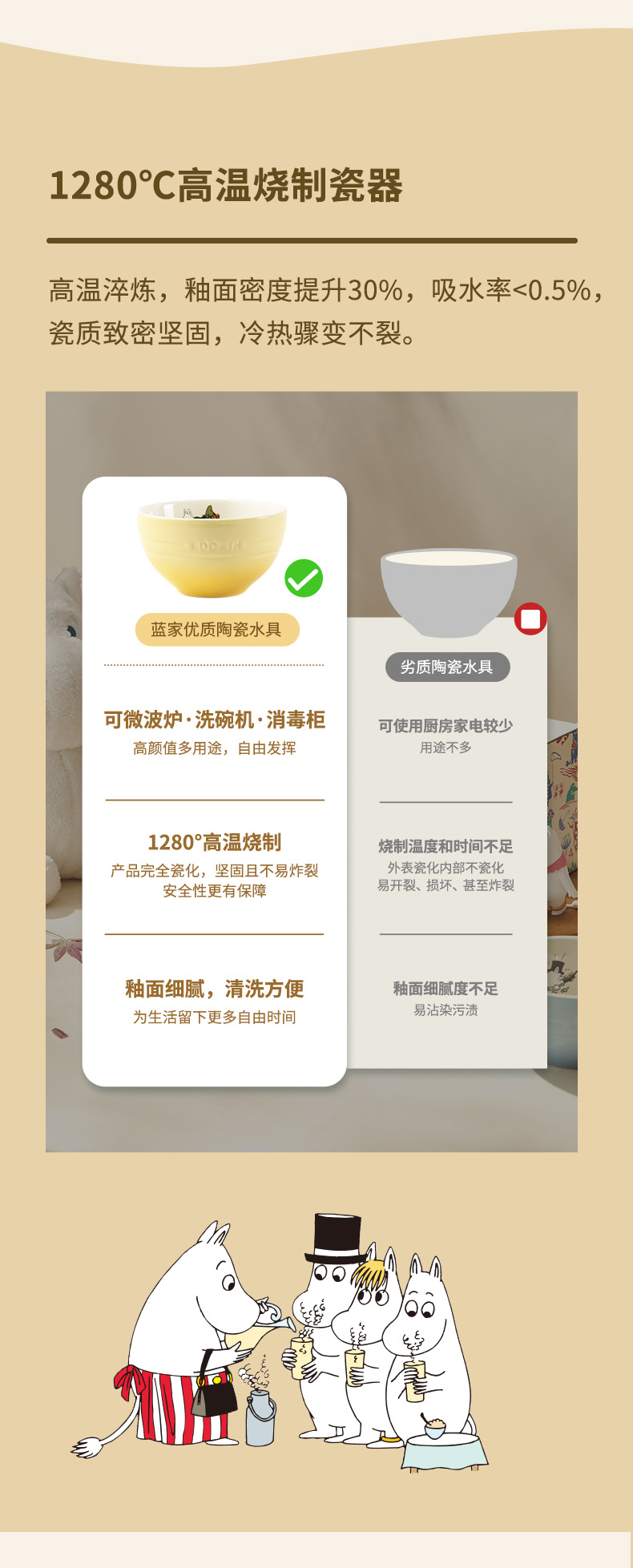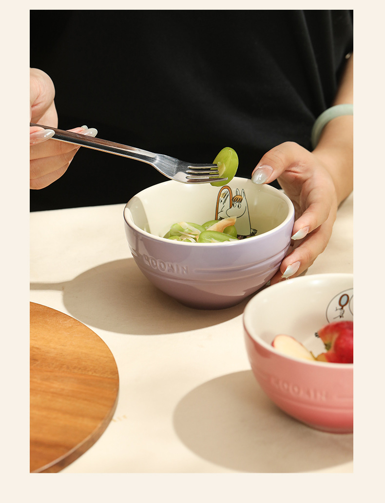Mominムーミンクリーム风食器漫画ハンドルボウル可爱いセラミックボウル子供用家庭用ご饭ボウルスプーン