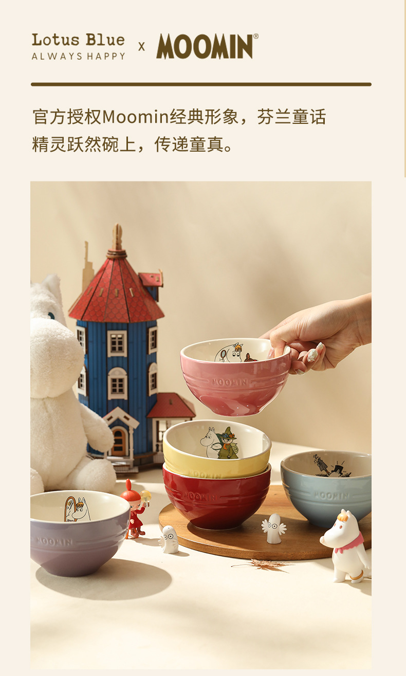 moomin姆明漂亮的饭碗陶瓷碗儿童吃饭专用斗笠碗高颜值酸奶碗
