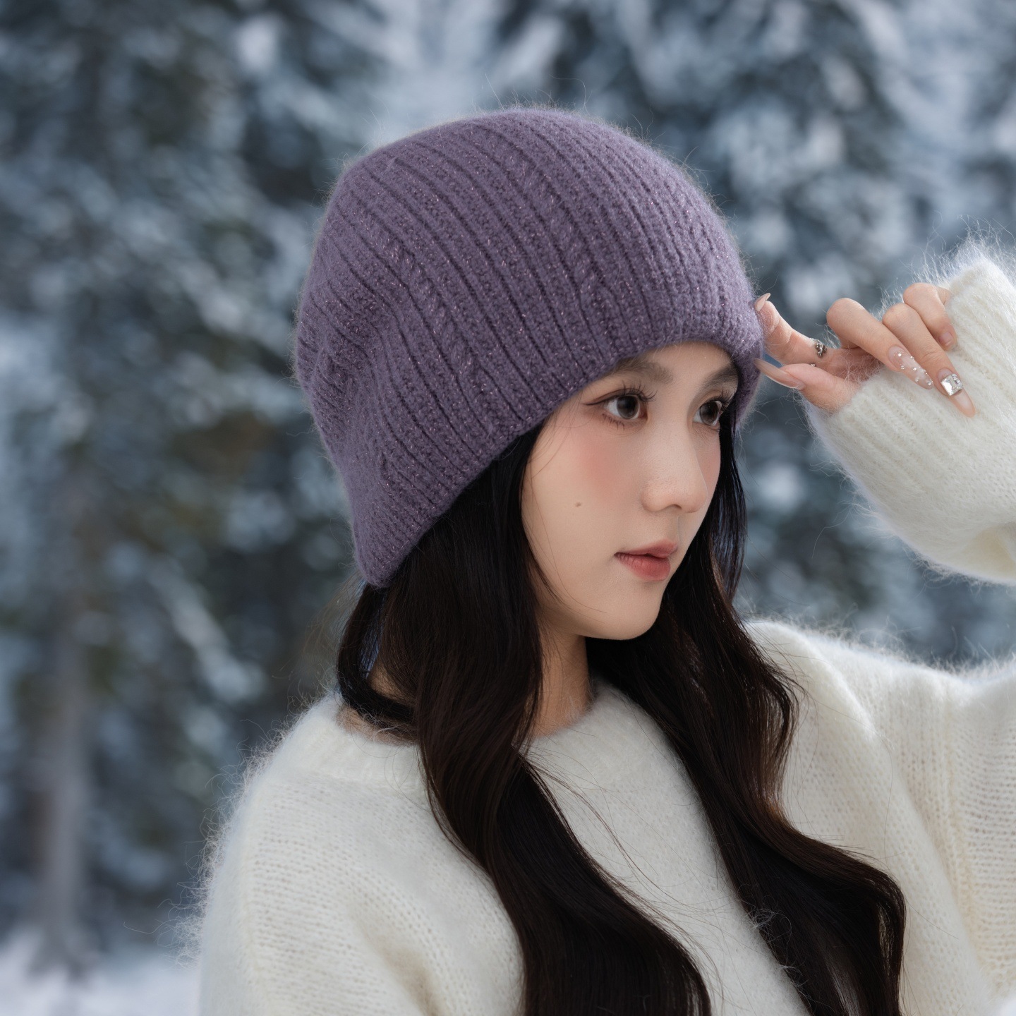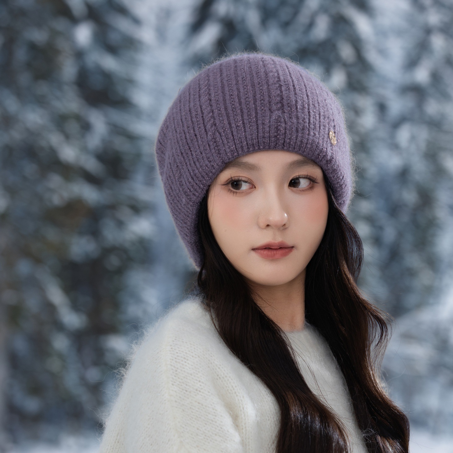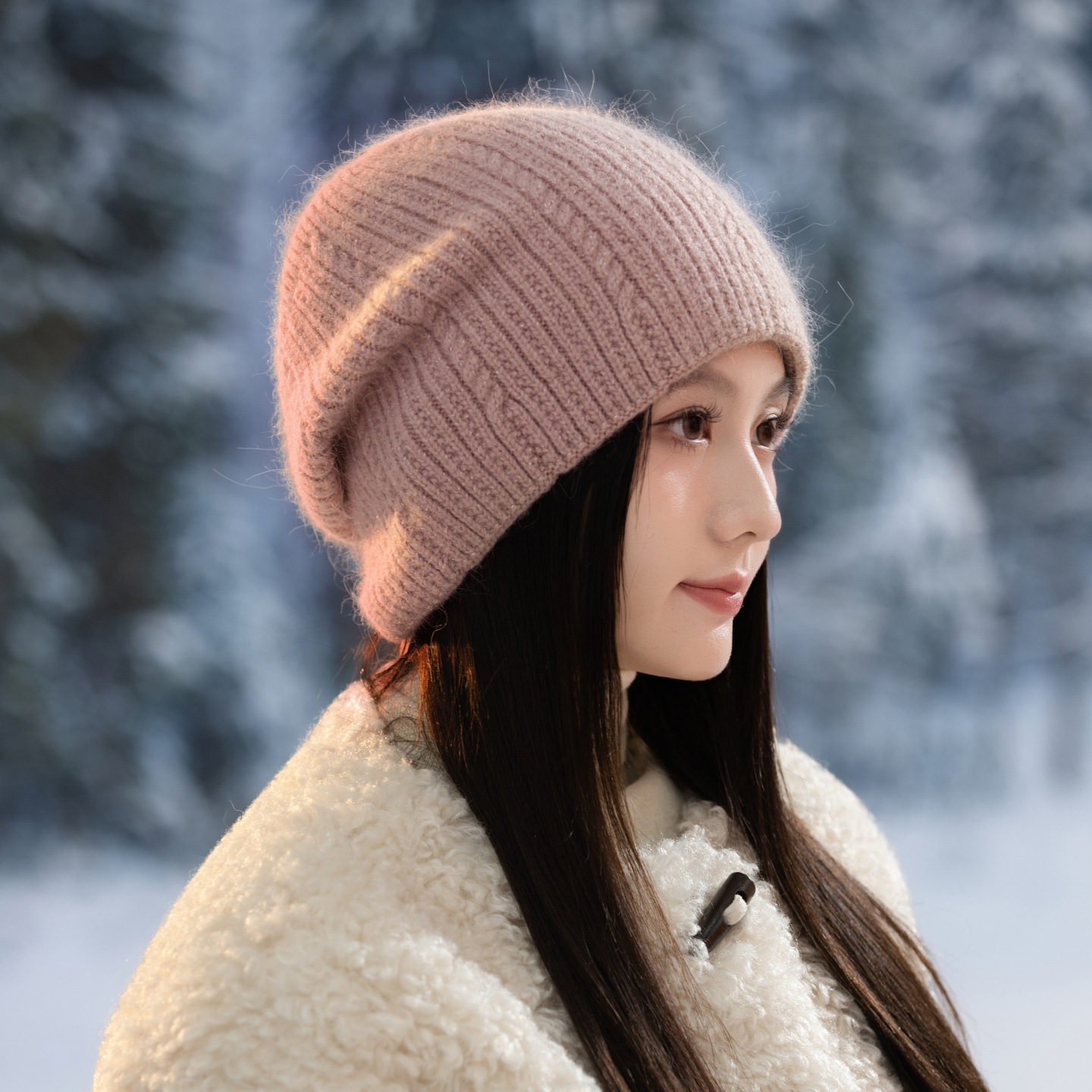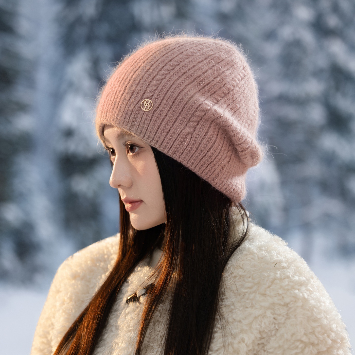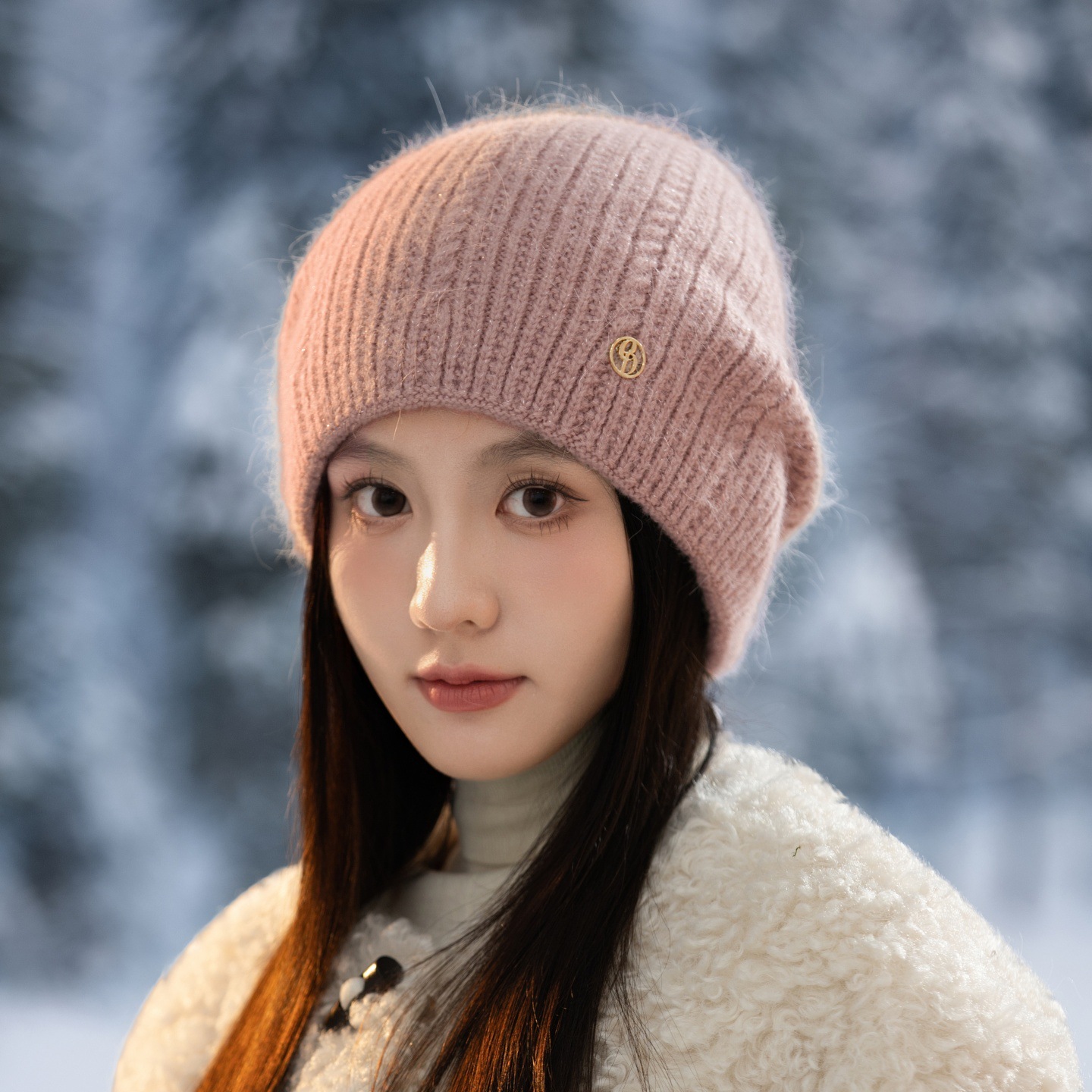 帽子女士妈妈帽2025秋冬兔毛休闲百搭八角帽保暖防寒护耳针织帽