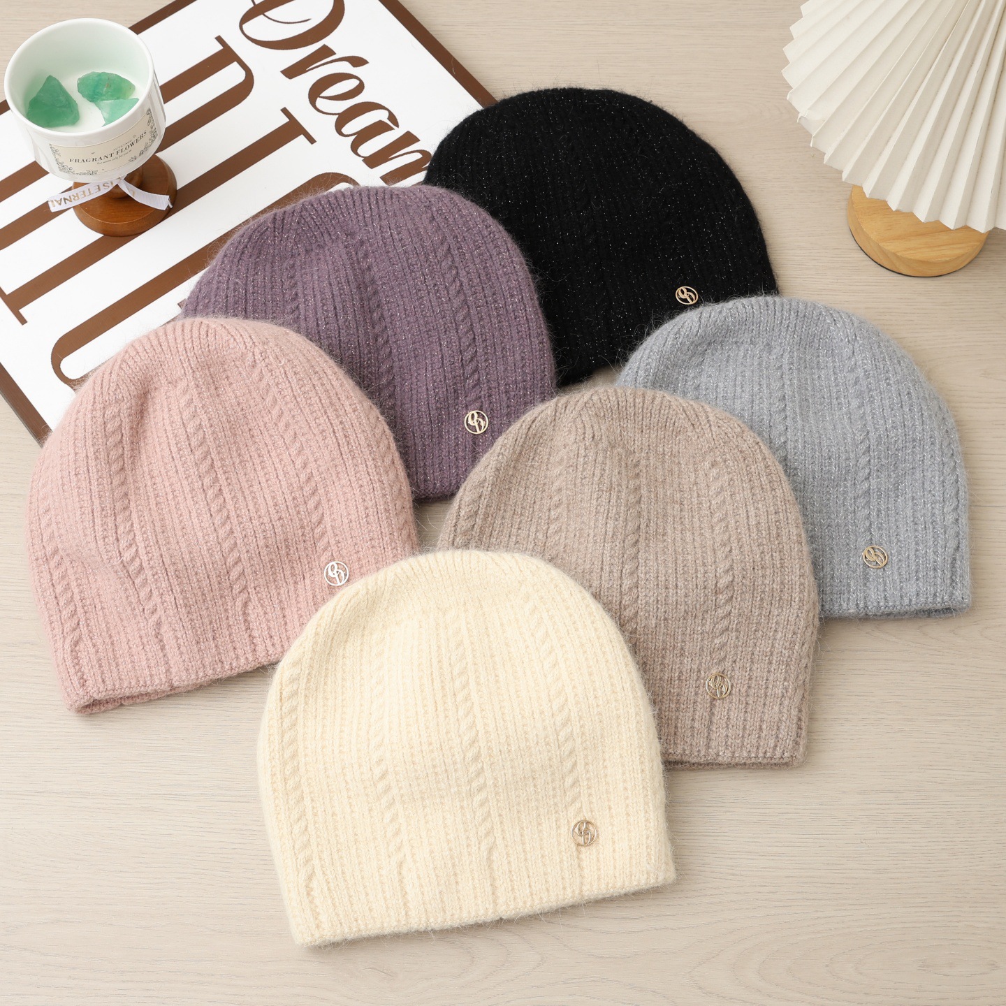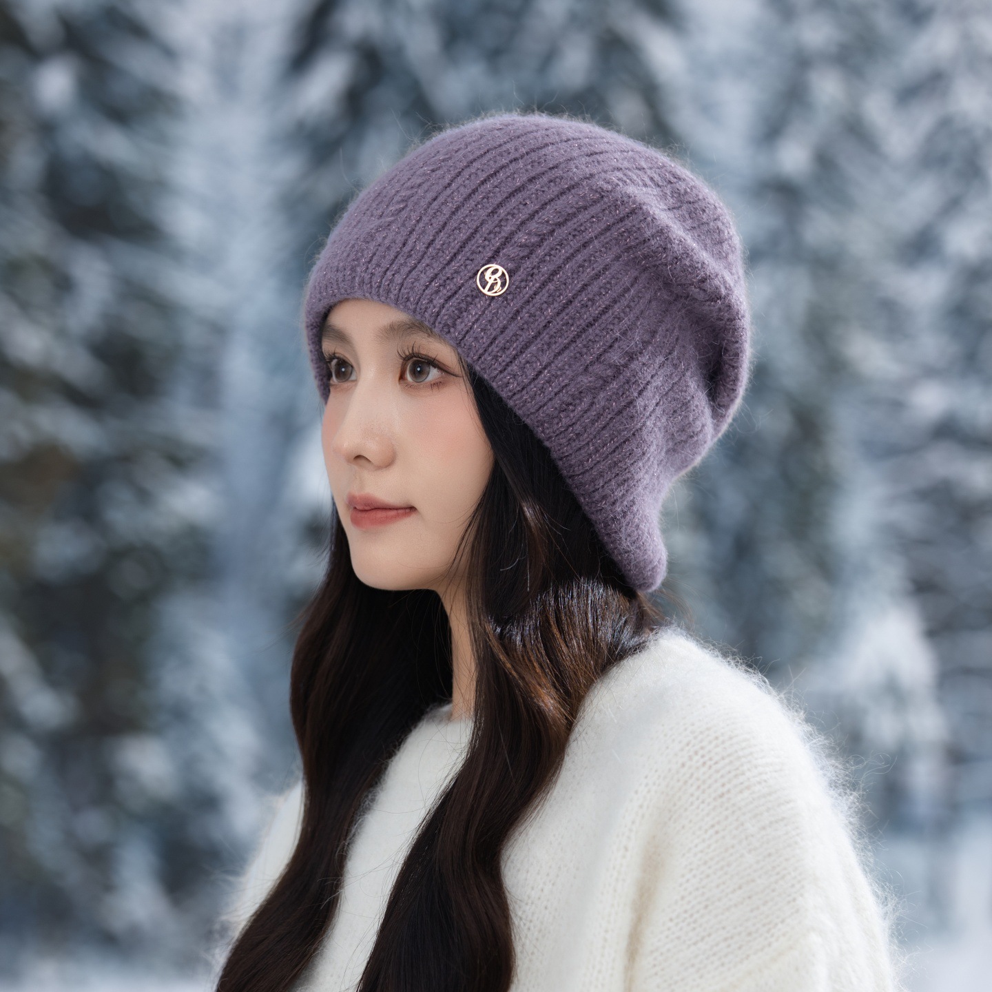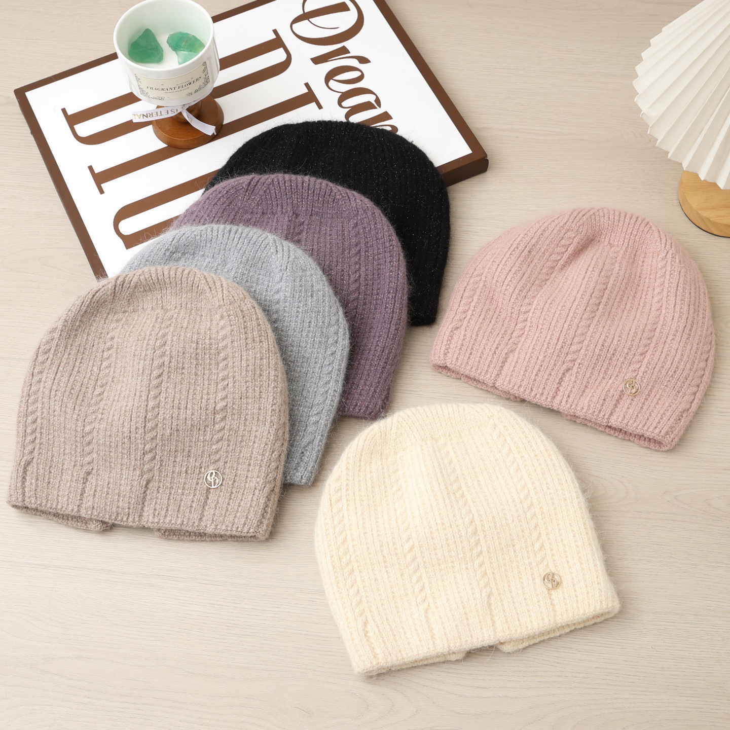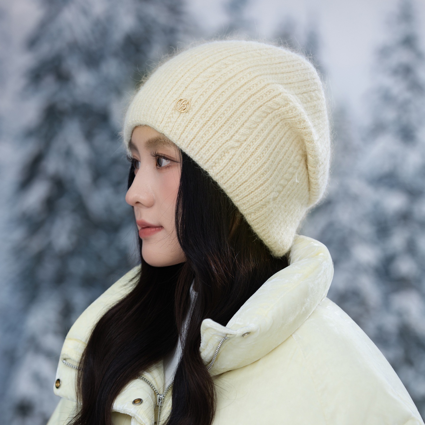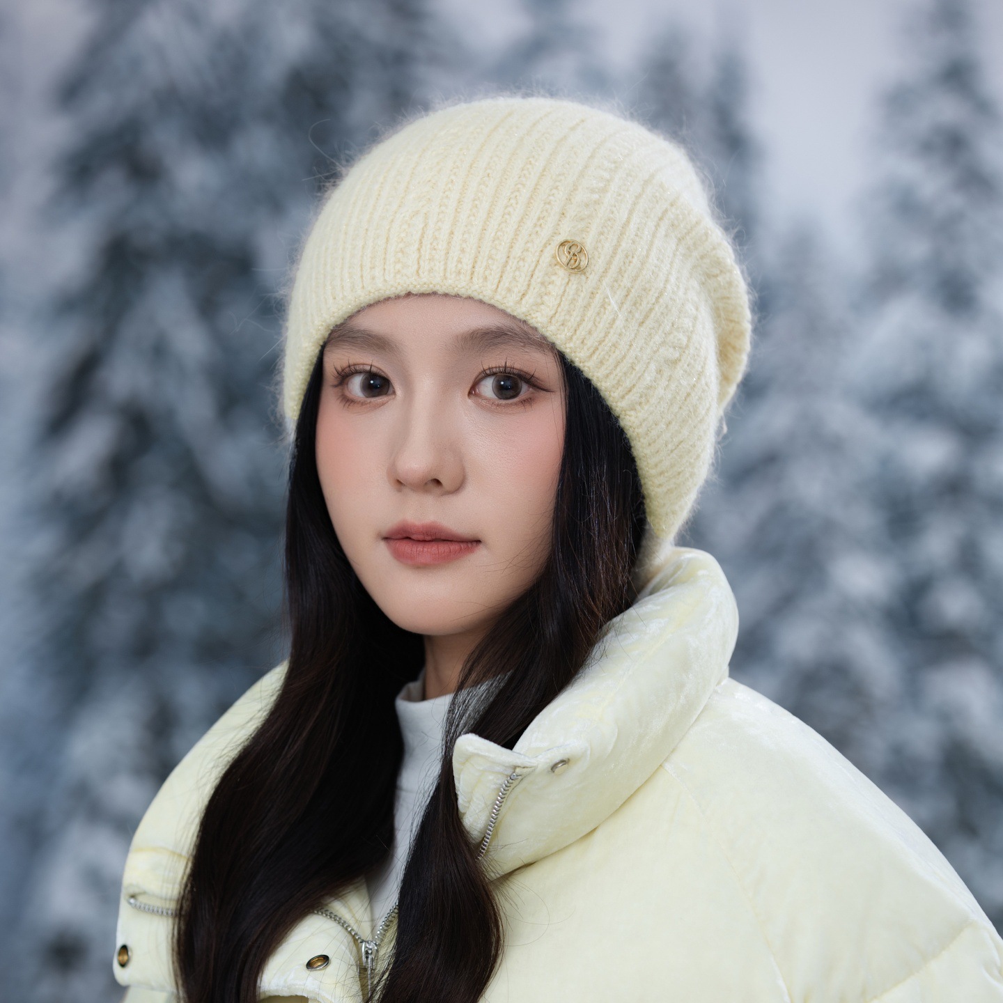 货号 5CW,2036音符圆标金丝兔毛堆堆帽