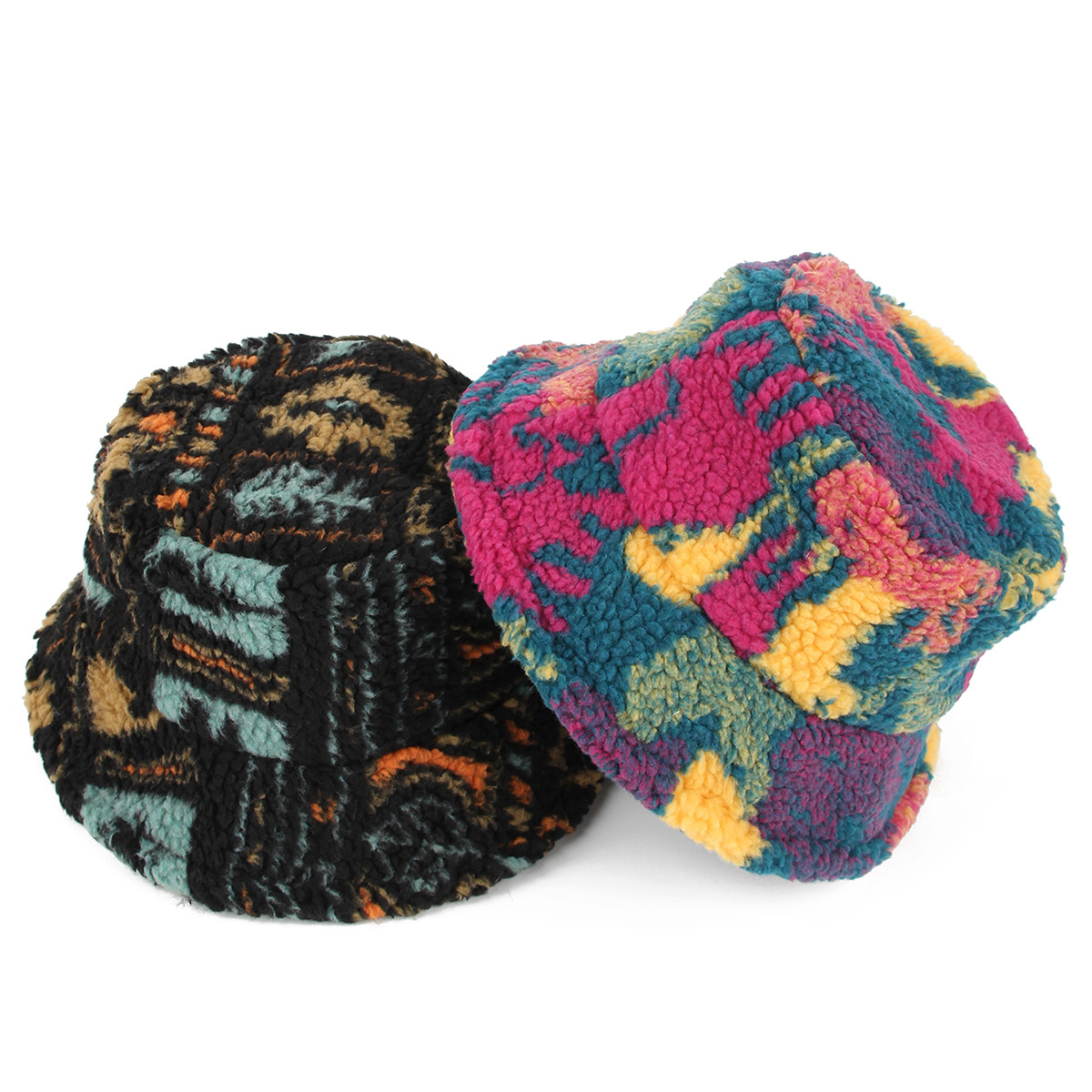 跨境渔夫帽女秋冬日韩版百搭创意七彩保暖时髦毛绒盆帽时尚潮加厚