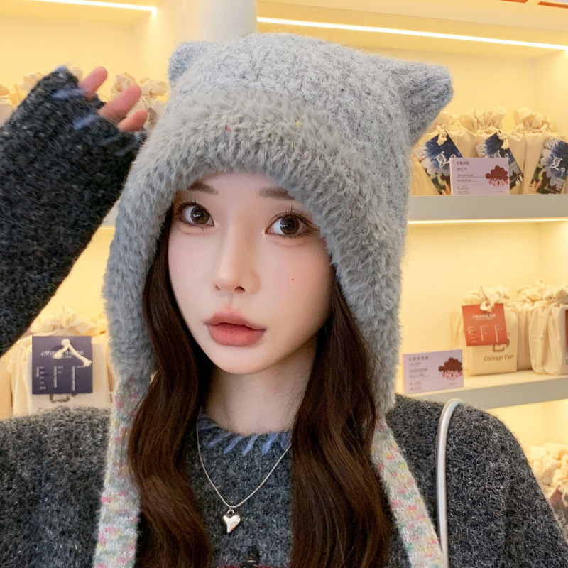 跨境新款耳朵针织帽女款可爱洋气秋冬保暖防寒冬天护耳毛线帽户外