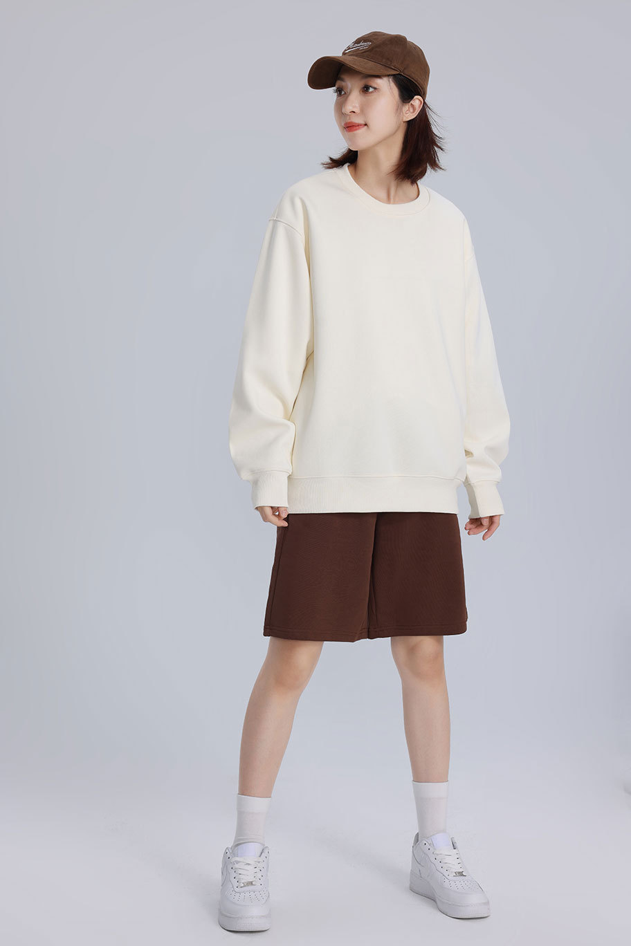 360g重磅毛圈落肩圆领卫衣女运动时尚潮牌宽松立体版型情侣上衣