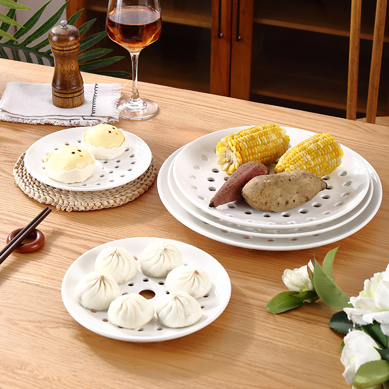セラミック餃子プレート、多孔質蒸しプレート、水切りプレート、丸型フルーツプレート、蒸し海鮮、蒸し魚プレート、蒸しスライス、丸型蒸しグリルプレート