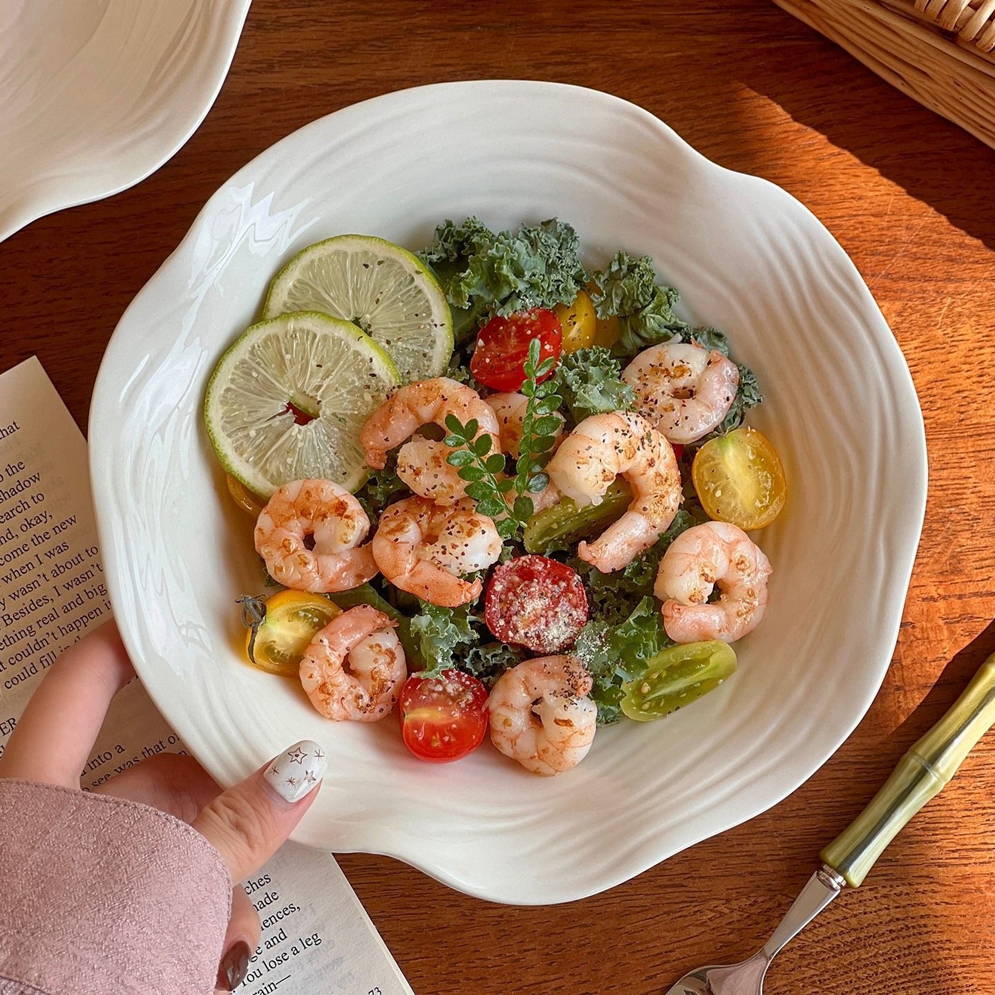 ins风不规则花边树纹盘子创意沙拉盘深盘西餐意面盘餐厅甜品盘子
