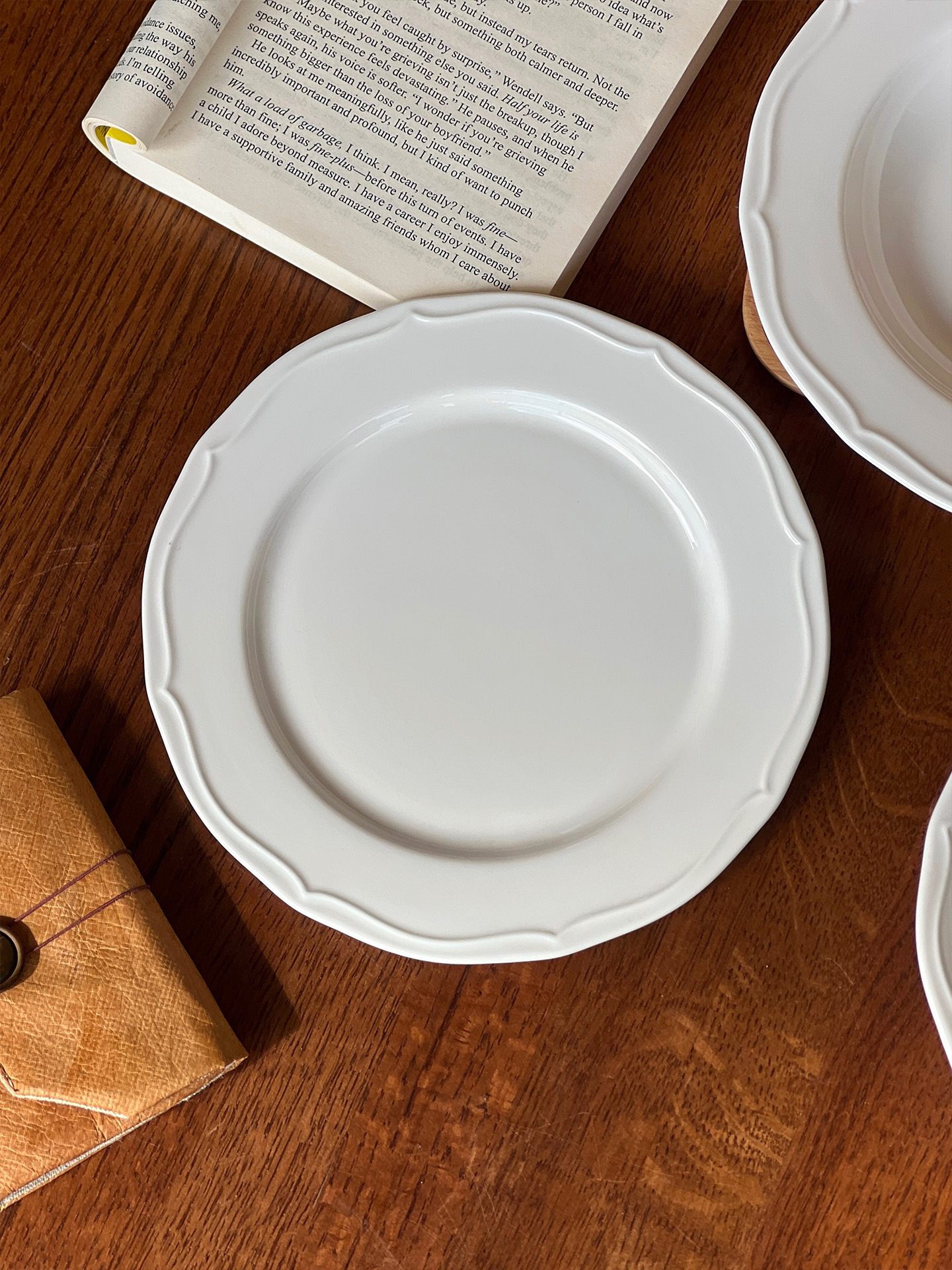 インススタイルレトロレリーフラインレースプレート純白セラミックプレートフレンチレリーフエッジ洋食プレートデザート朝食プレート