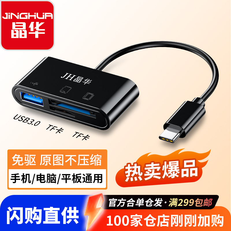 晶華カードリーダー三合一sd多機能Typec中継多口OTG読み取りTF高速ミニモバイルアンドロイド