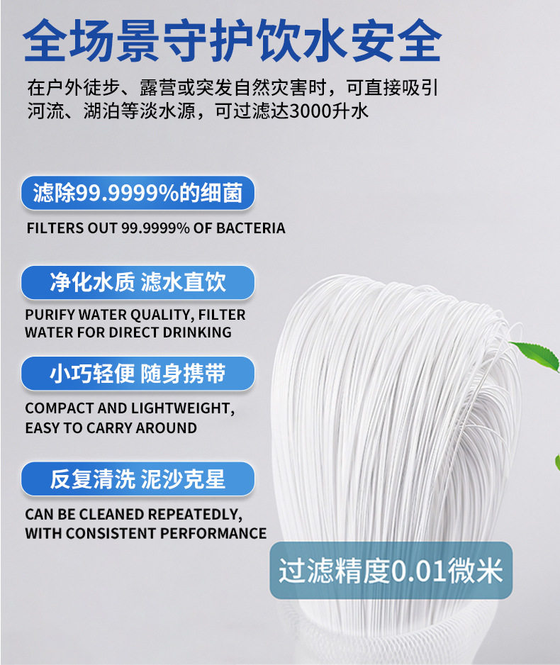 跨境便携户外净水直饮吸管可视窗过滤器野外应急超滤净水器定制