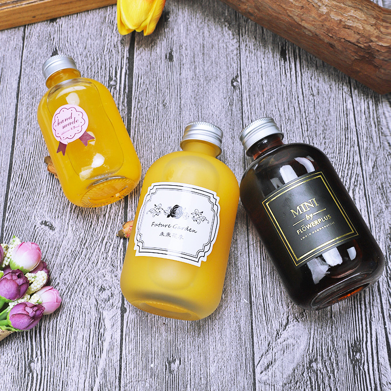 スポット卸売りテーパー250 ~ 330ml冷泡茶レモン飲料瓶小口果実酒瓶insガラス密封缶
