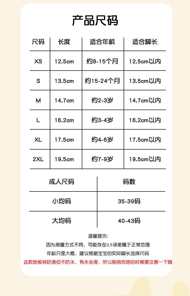 怎么选择合适的鞋码?:宝宝的脚需要留出一定的活动空间,建议按照宝宝净脚长加0.5cm-1cm选鞋码,如宝宝净脚长12.5cm,您可以选鞋底长13.5cm的鞋子,脚偏胖建议选大一码的(仅供参考)