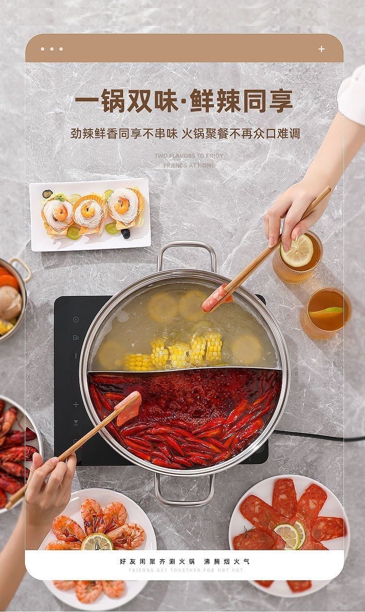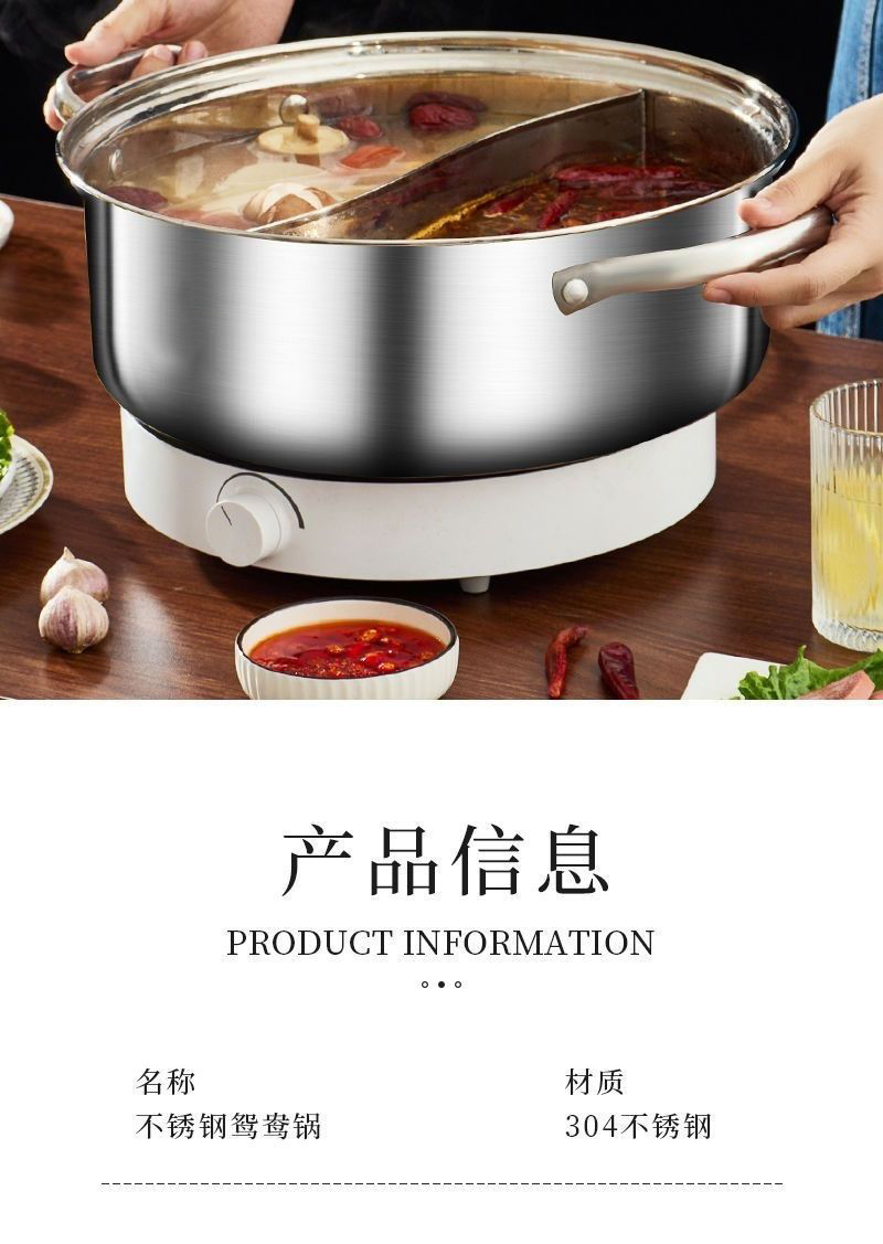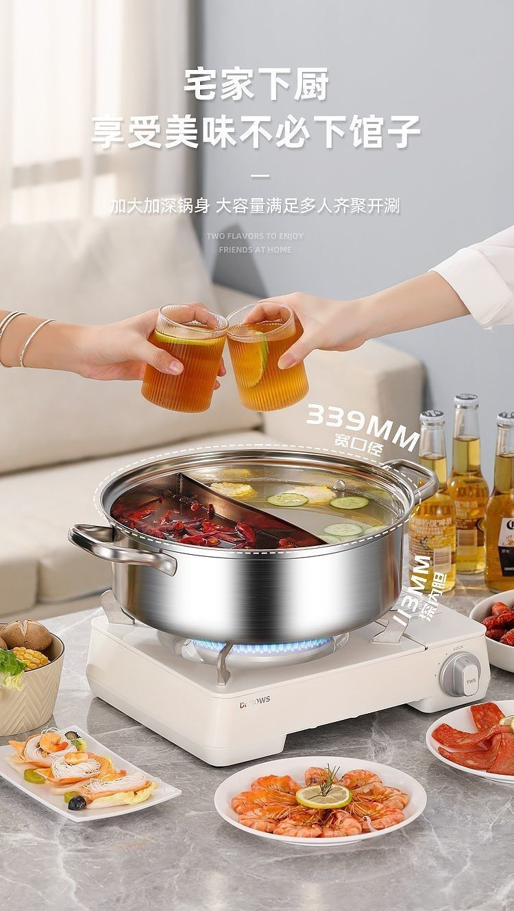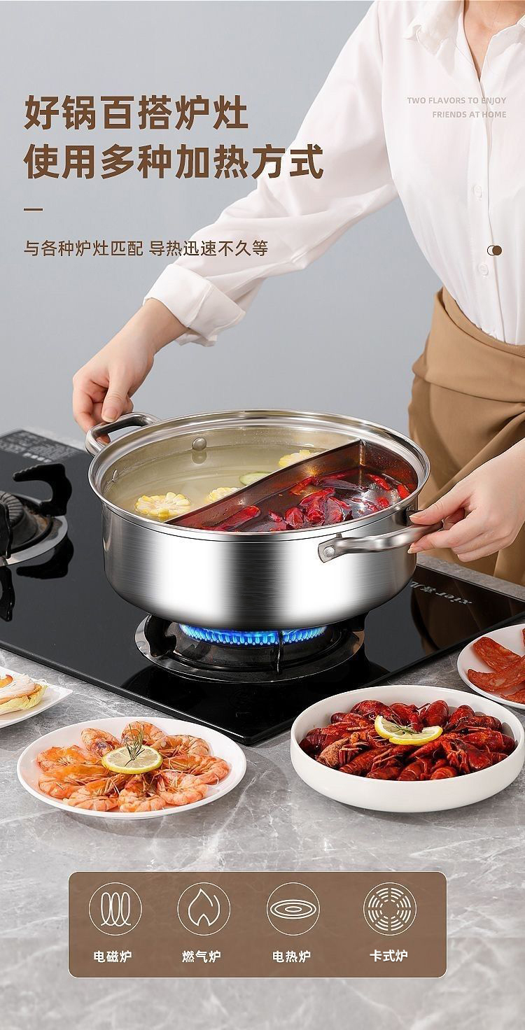 316不锈钢鸳鸯锅特厚家用火锅电磁炉涮羊肉锅卡式炉火锅锅具