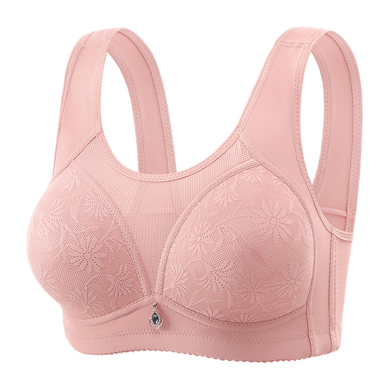 女性用大きいサイズ薄型ノンワイヤー前開きベスト型ブラジャー、垂れ防止、中高年ママ向けブラジャー、卸売販売