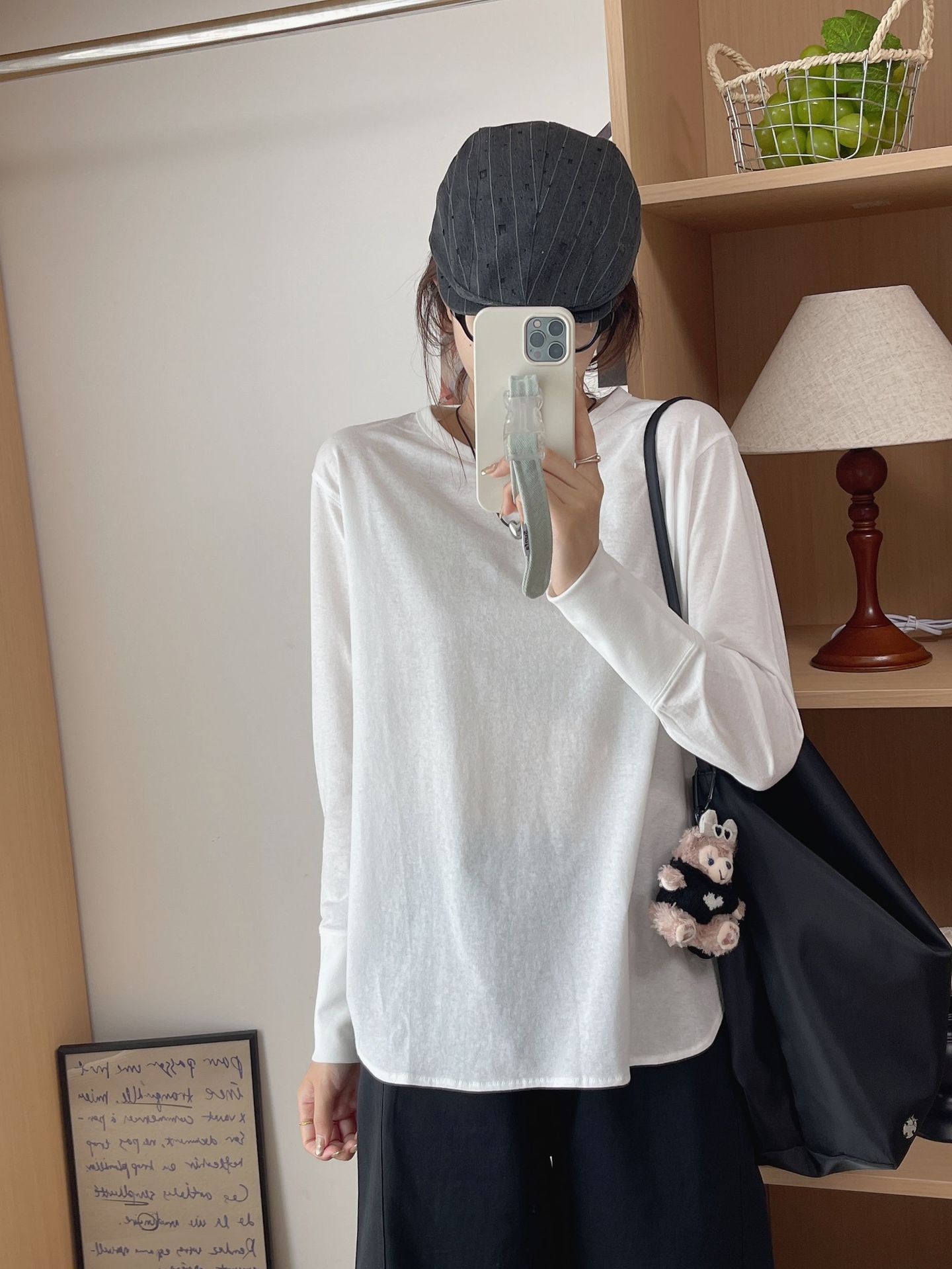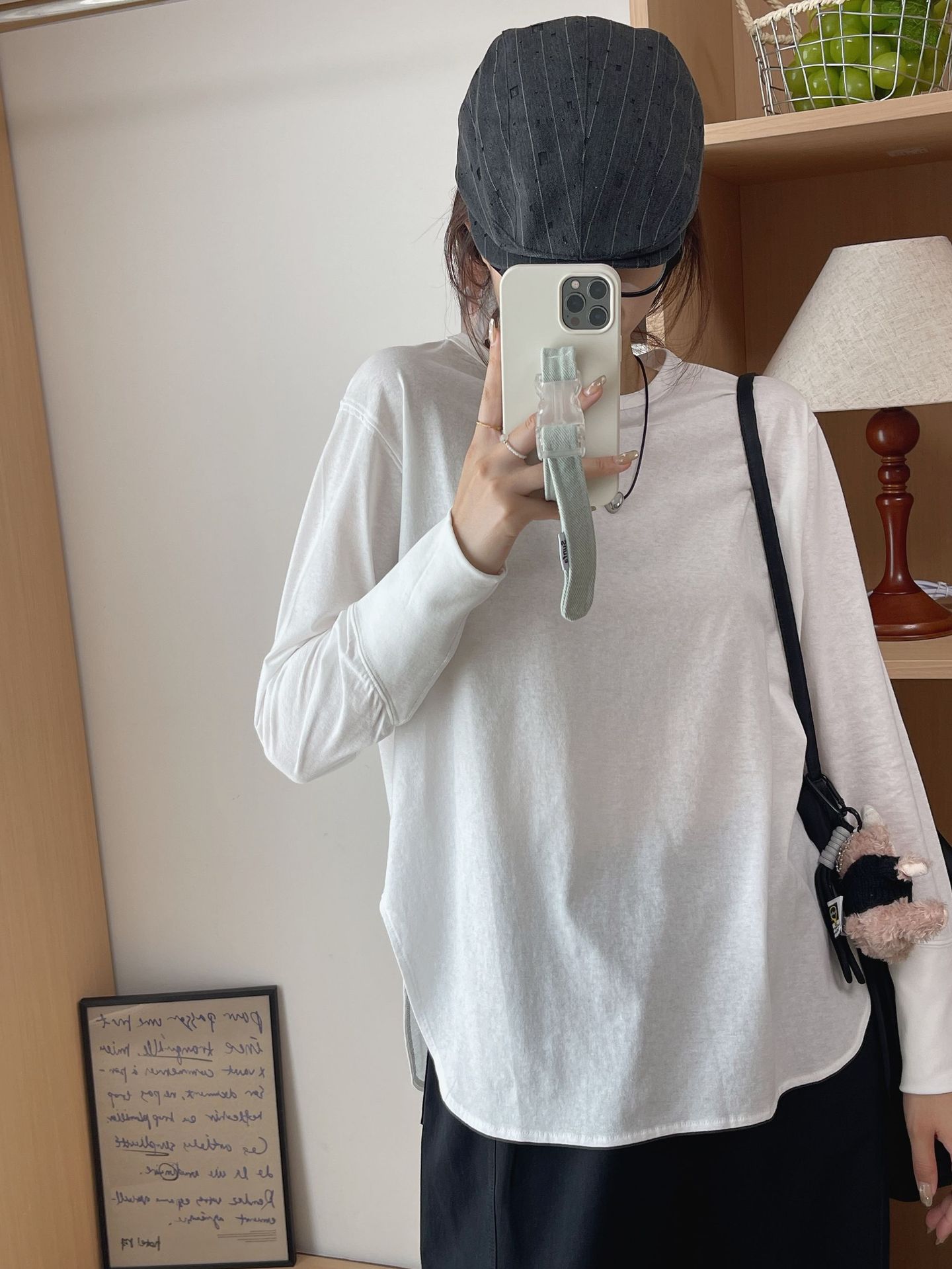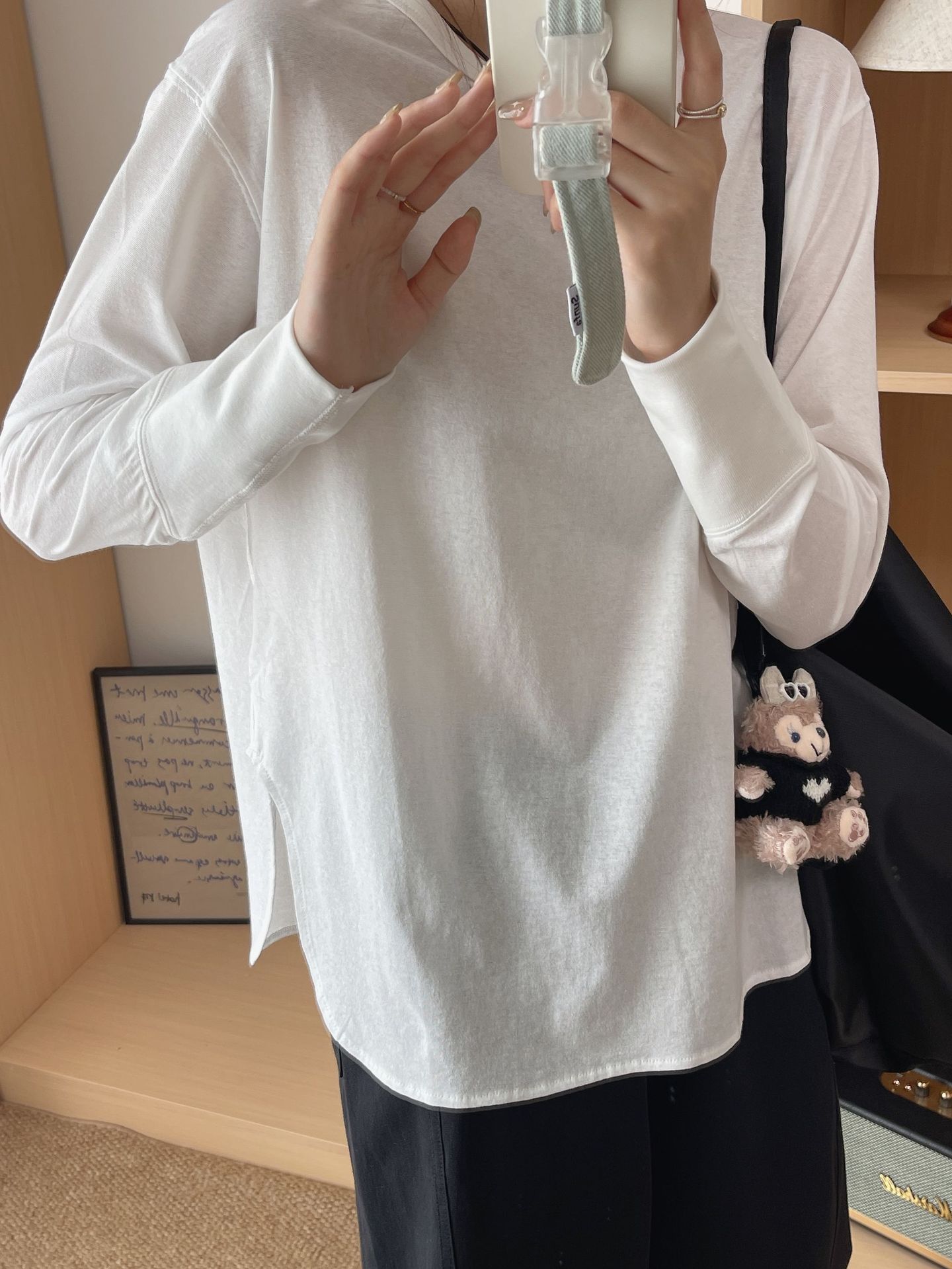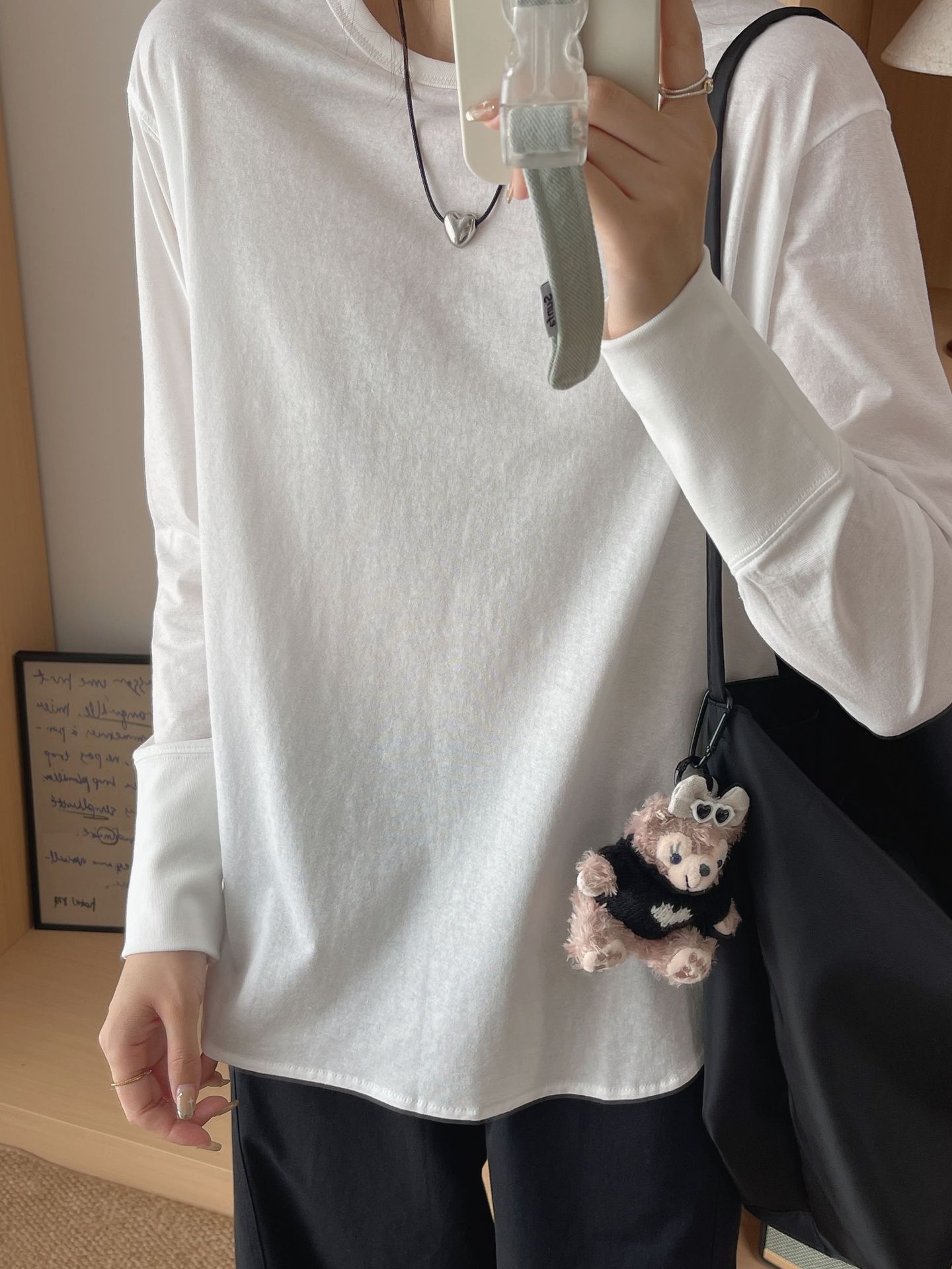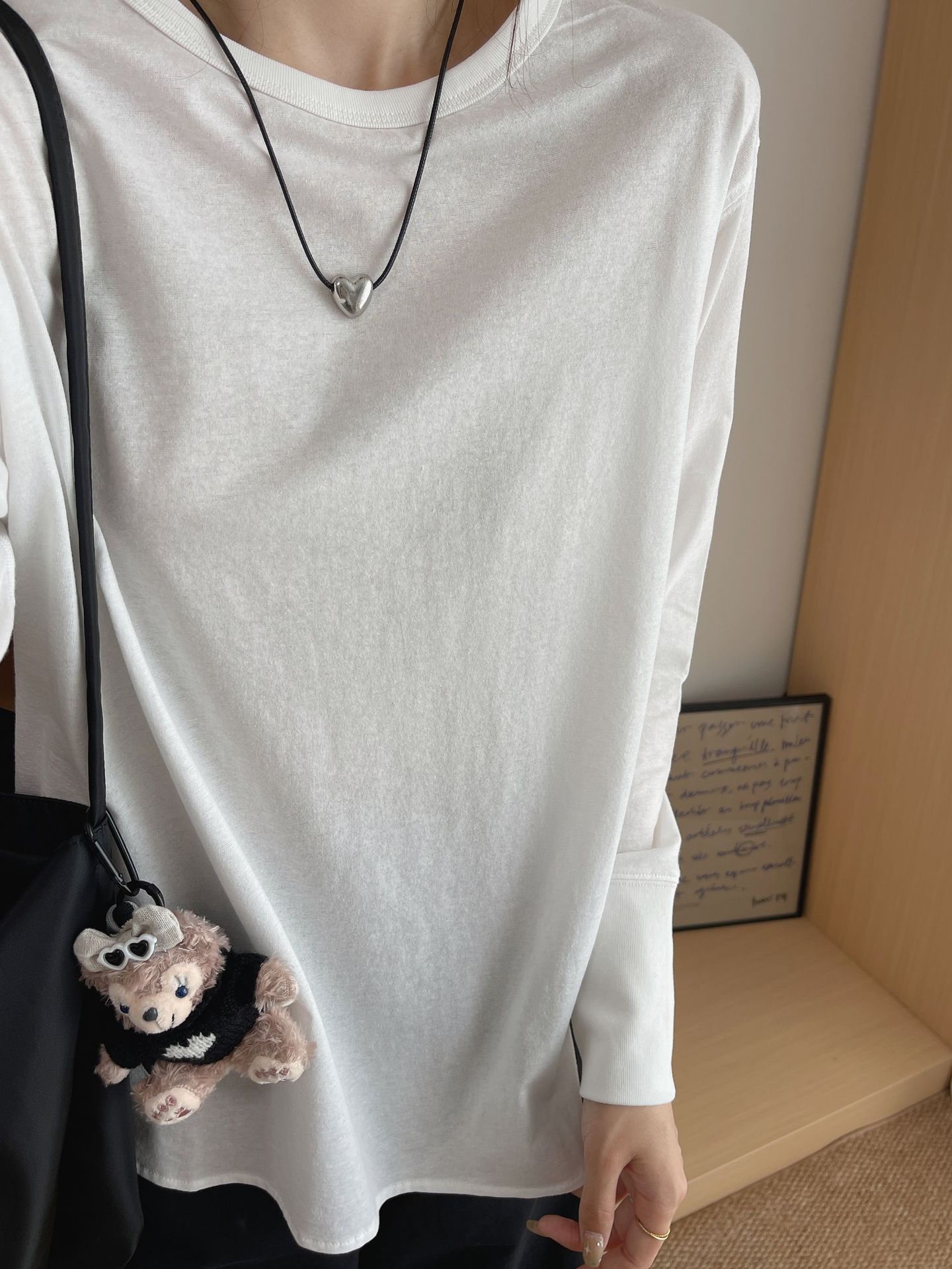 秋季女款上衣白色干净圆领小众温柔长袖打底衫慵懒感韩系内搭t恤