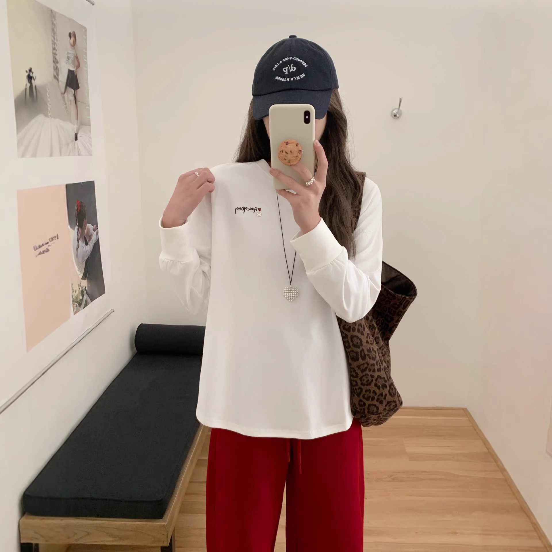 白色长袖t恤女2025新款纯棉圆领内搭上衣情侣爱心春秋宽松打底衫