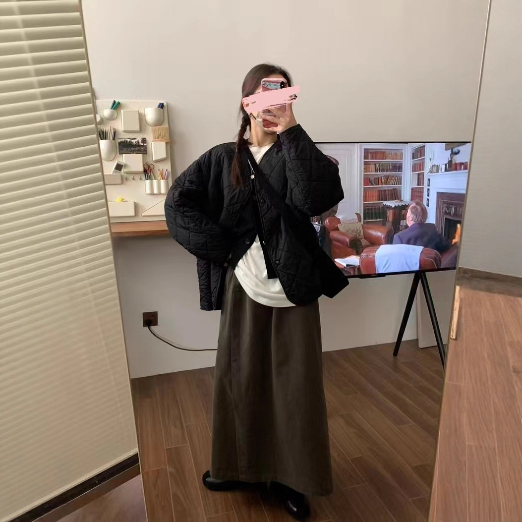 菱格棉服保暖加厚韩系黑色显瘦上衣冬季新款圆领轻薄羊毛外套
