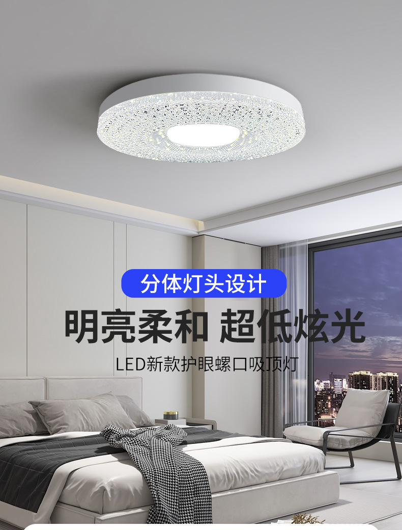 跨境新款飞碟灯螺口led卧室餐厅简约水晶灯泡护眼三色圆形厨房卫