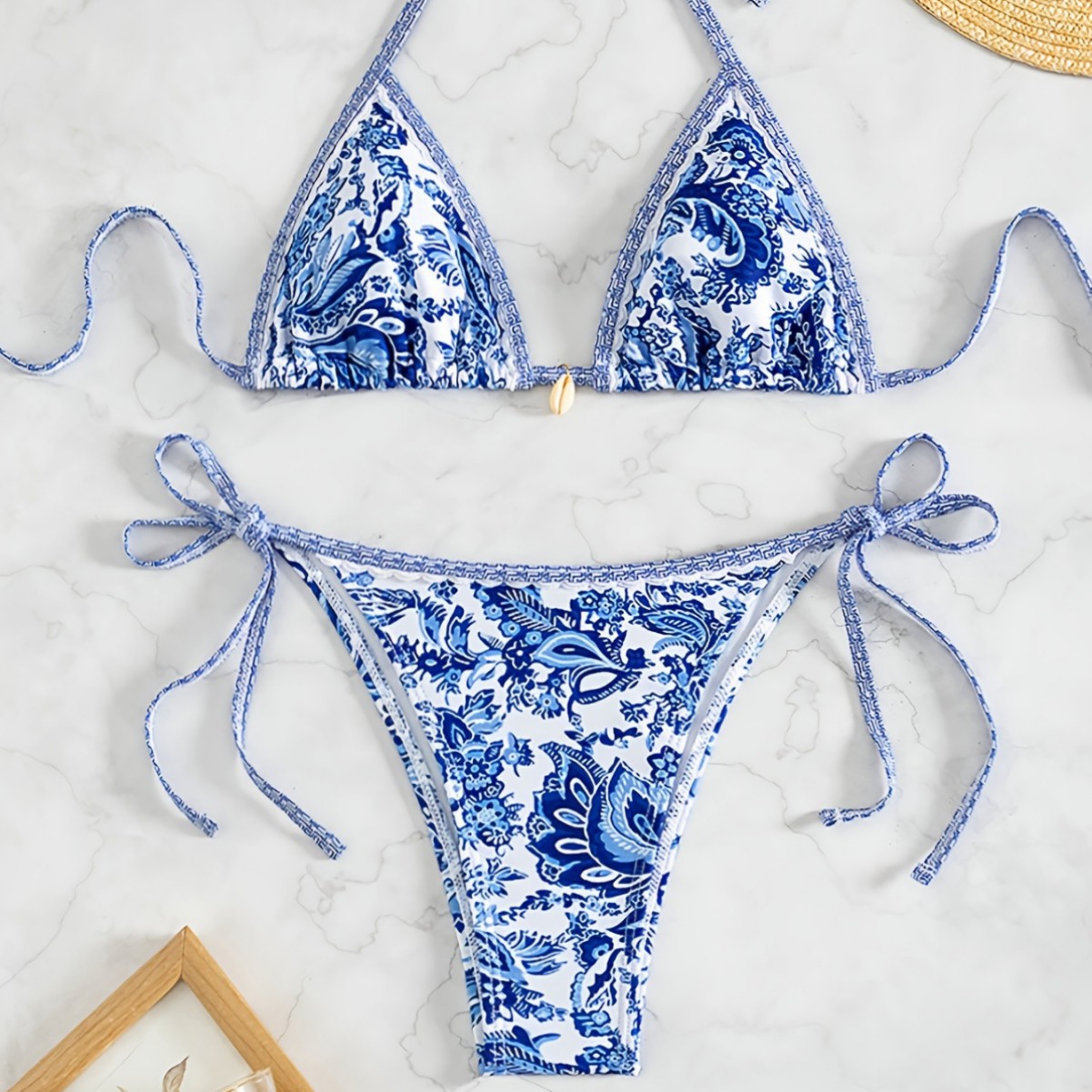 欧美外贸跨境 比基尼女式两件式泳衣贝壳简约时尚泳衣女套装 厂家