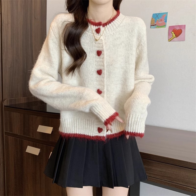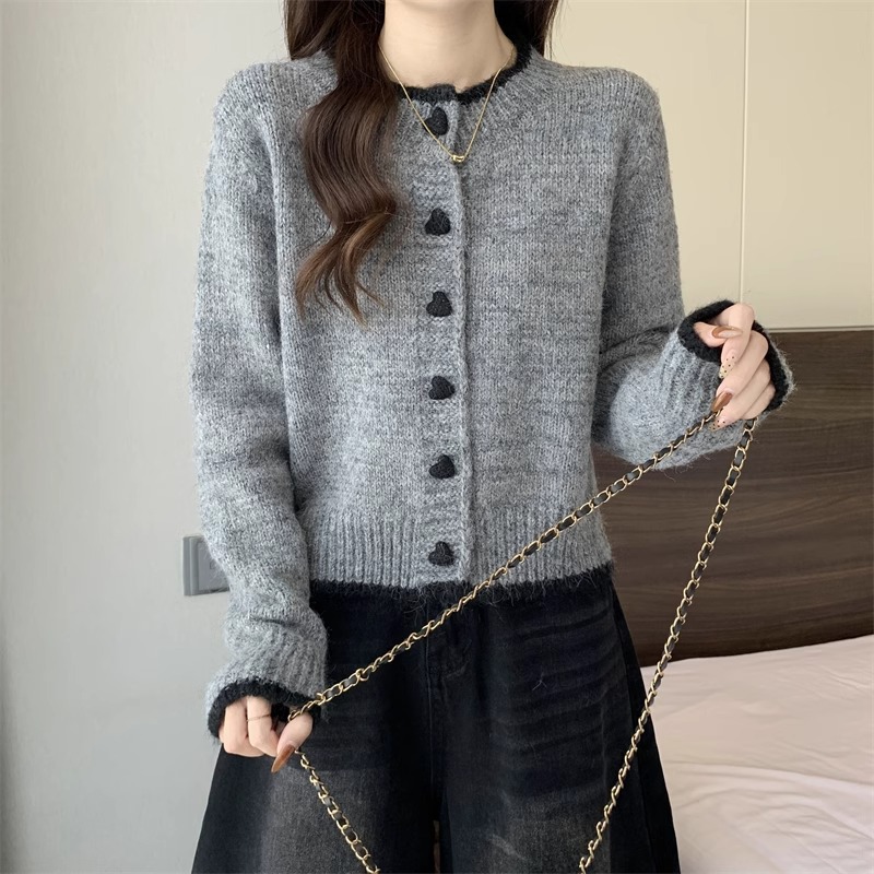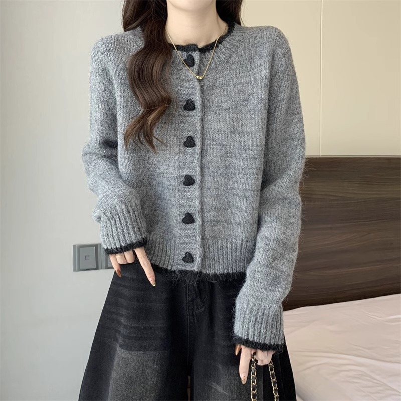 韩系2025秋冬甜美减龄爱心扣针织开衫女圆领新款百搭毛衣外套百搭