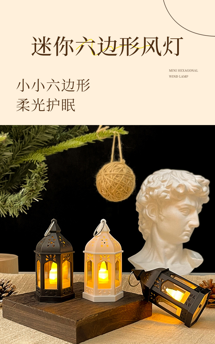 Ledミニ六角風灯寮寝室小夜灯シミュレーション電子ろうそく灯装飾雰囲気灯小置物