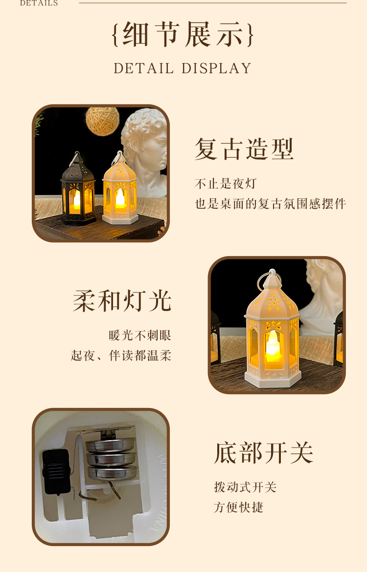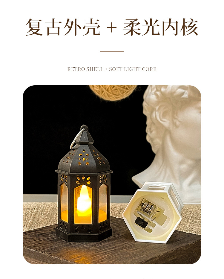 迷你复古仿真小夜灯led电子蜡烛灯手提风灯装饰氛围挂件桌面摆件