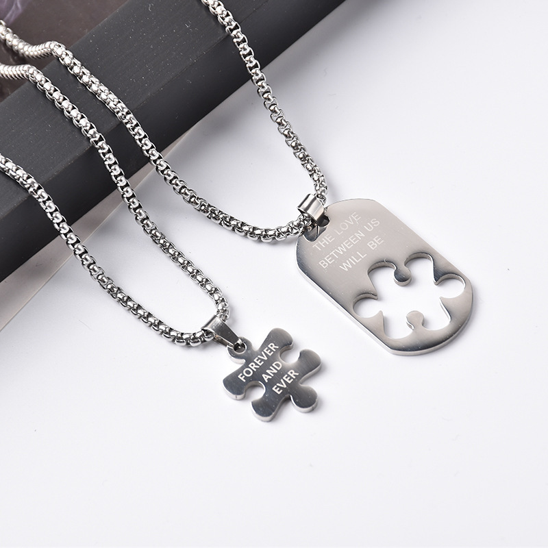越境売れ筋ラブパズルスプライシングネックレスファッショントレンディなカップル彫刻ペアチタン鋼ペンダント親友装身具