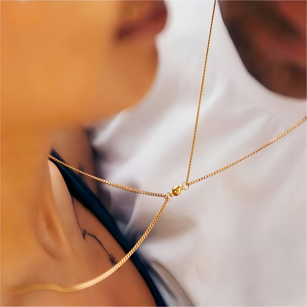 跨境情侣心形不锈钢项链 钛钢镀18k金磁吸情人吊坠情欧美人节饰品