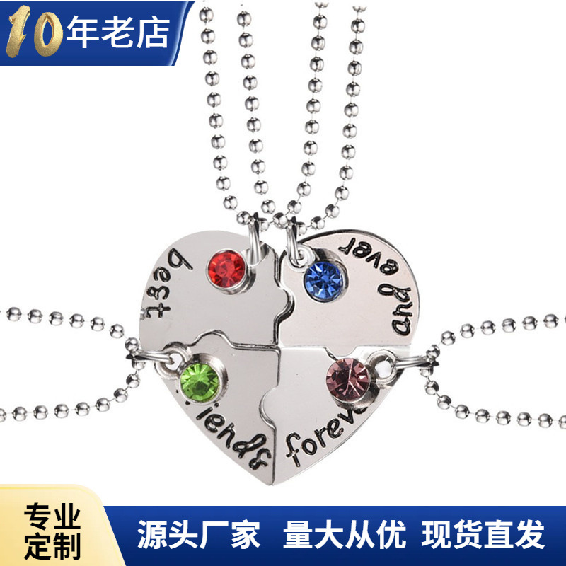 欧米で人気のネットセレブファッション、文字入り「ベストフレンド・フォー・エバー」フレンドネックレス、ハート型の組み合わせ