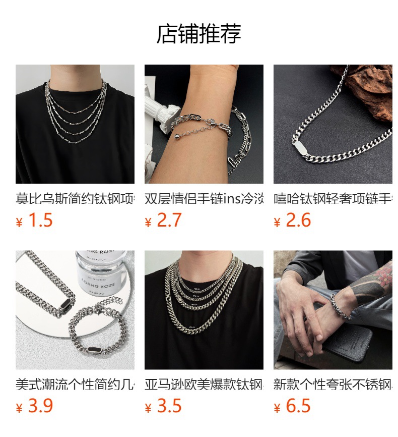欧米の国境を越えたチタン鋼はシンプルで、長い口笛のネックレスがよく売れています。