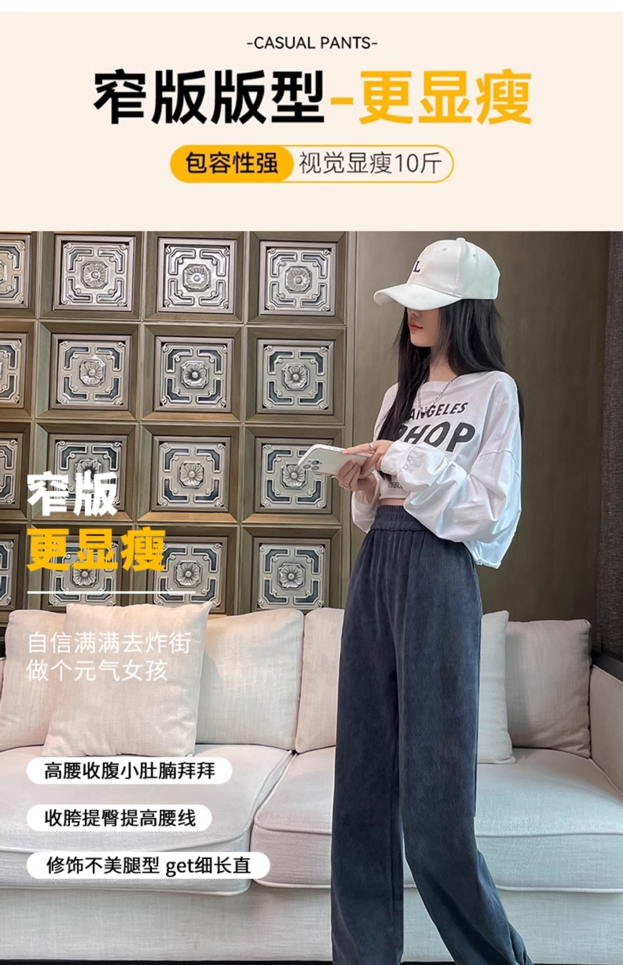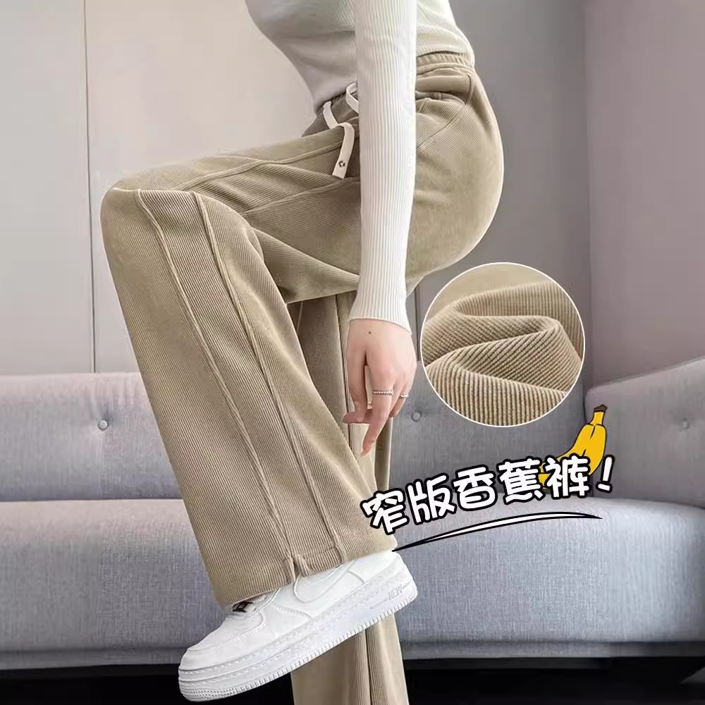 狭い版のバナナの広腿のズボンの小さい身のもち米の雪のニールの女性のストレートなズボンの春秋冬の高腰の新型のカジュアルなズボンの潮
